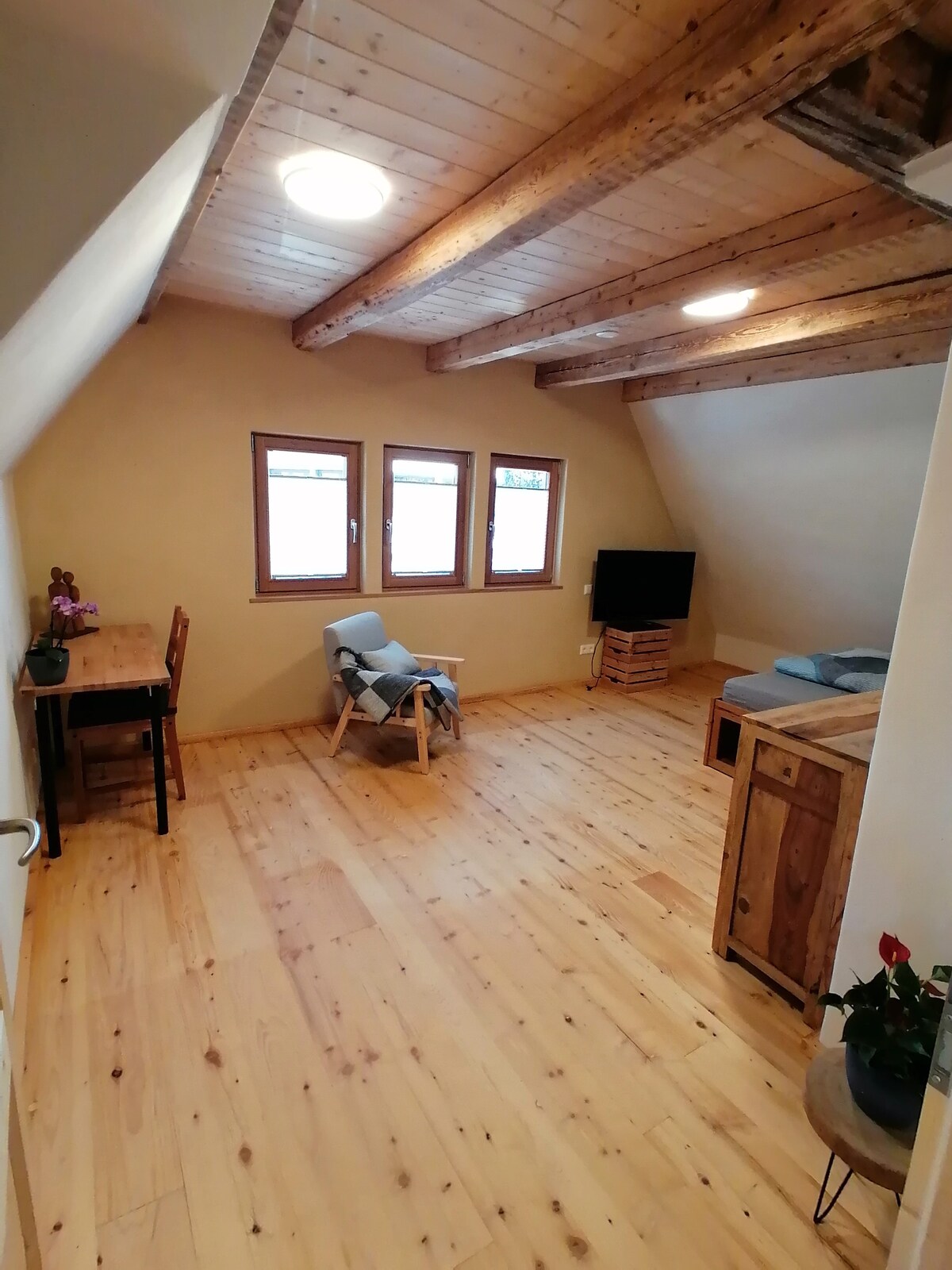 Καθίστε αναπαυτικά και χαλαρώστε – σε αυτό το ήσυχο, κομψό και όμορφα διακοσμημένο κατάλυμα περίπου 55 τ.μ. Το διαμέρισμα βρίσκεται σε μια αγροτική περιοχή και βρίσκεται πολύ κοντά σε μονοπάτια πεζοπορίας, δάσος, πίστες για σκι αντοχής και πίστες για σκι. Το διαμέρισμα βρίσκεται στη σοφίτα ενός σπιτιού δύο οικογενειών. Είναι πρόσφατα ανακαινισμένο, το μπάνιο σας προσκαλεί να χαλαρώσετε με τη μεγάλη ντουζιέρα βροχής. Στην πλήρως εξοπλισμένη κουζίνα, τίποτα δεν εμποδίζει την αυτοεξυπηρέτηση.