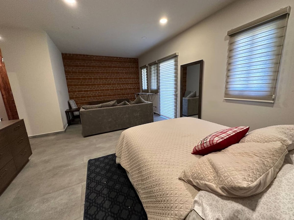 Ρομαντική και κομψή σοφίτα στο ισόγειο στο Val 'Quirico. Ιδανικό για να γιορτάσετε ξεχωριστές στιγμές με τον/την σύντροφό σας. Εξοπλισμένο για μέγιστη απόλαυση: Σεξουαλική πολυθρόνα, αίτημα για παιχνίδια για ενήλικες και πώληση κρασιού. Απολαύστε μικρή κουζίνα, μπαρ, μίνι μπαρ, σαλόνι και όλα όσα χρειάζεστε για μια αξέχαστη εμπειρία. Κρεβάτι queen size με κομψά σεντόνια, βεράντα με ιδιωτικό εξωτερικό τζακούζι, πλήρες μπάνιο για την άνεσή σας. Βήματα από το Zocalo και την Plaza Haces, ζήστε μια μοναδική γοητεία!