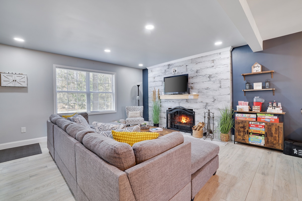 Αποδράστε σε μια άνετη φθινοπωρινή απόδραση κοντά στο Kalahari, το Mount Airy Casino, τα Crossings Outlets, τη λίμνη Wallenpaupack και το Tobyhanna State Park 2 μίλια μακριά με φθινοπωρινά φύλλα και βουνό, θέα στη λίμνη, άγρια ζωή και σημεία για πικνίκ. Φωλιάζει σε έναν τραχύ ιδιωτικό δρόμο. Αυτό το καταφύγιο σε στυλ σπα διαθέτει μπανιέρα, ντους οροφής, έξυπνα φώτα, κουζίνα με έξυπνη κουζίνα, πολυτελή κρεβάτια, καθρέφτες LED με συγχρονισμό μουσικής και ρετρό ηλεκτρονικά παιχνίδια. Ιδανικό για ζευγάρια, αποδράσεις γενεθλίων ή οικογένειες που αναζητούν μια ήσυχη διαμονή στο Poconos με σύγχρονες ανέσεις.