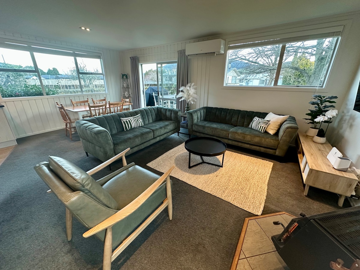 Καλαίσθητα ανακαινισμένο πλήρως εξοπλισμένο σπίτι και νέος ξενώνας. Πλήρως μονωμένο με διπλά τζάμια. Μεγάλο μπάνιο, ζεστό νερό με αέριο και μεγάλη κουζίνα/τραπεζαρία/οικογενειακό δωμάτιο που ανοίγει σε μια μεγάλη βεράντα για υπαίθρια διαβίωση. Ζεστό και άνετο τον χειμώνα (αντλία θερμότητας), σκιά το καλοκαίρι με μεγάλο επίπεδο τμήμα γκαζόν, κήπου και δέντρων. Πολύ κοντά στο ποτάμι σε κοντινή απόσταση από τη γέφυρα προς τα καταστήματα Turangi. Υπόστεγο αυτοκινήτου προσαρτημένο στο σπίτι για στεγνή πρόσβαση. Ήσυχος δρόμος δίπλα στον ποταμό Tongariro και το πάρκο