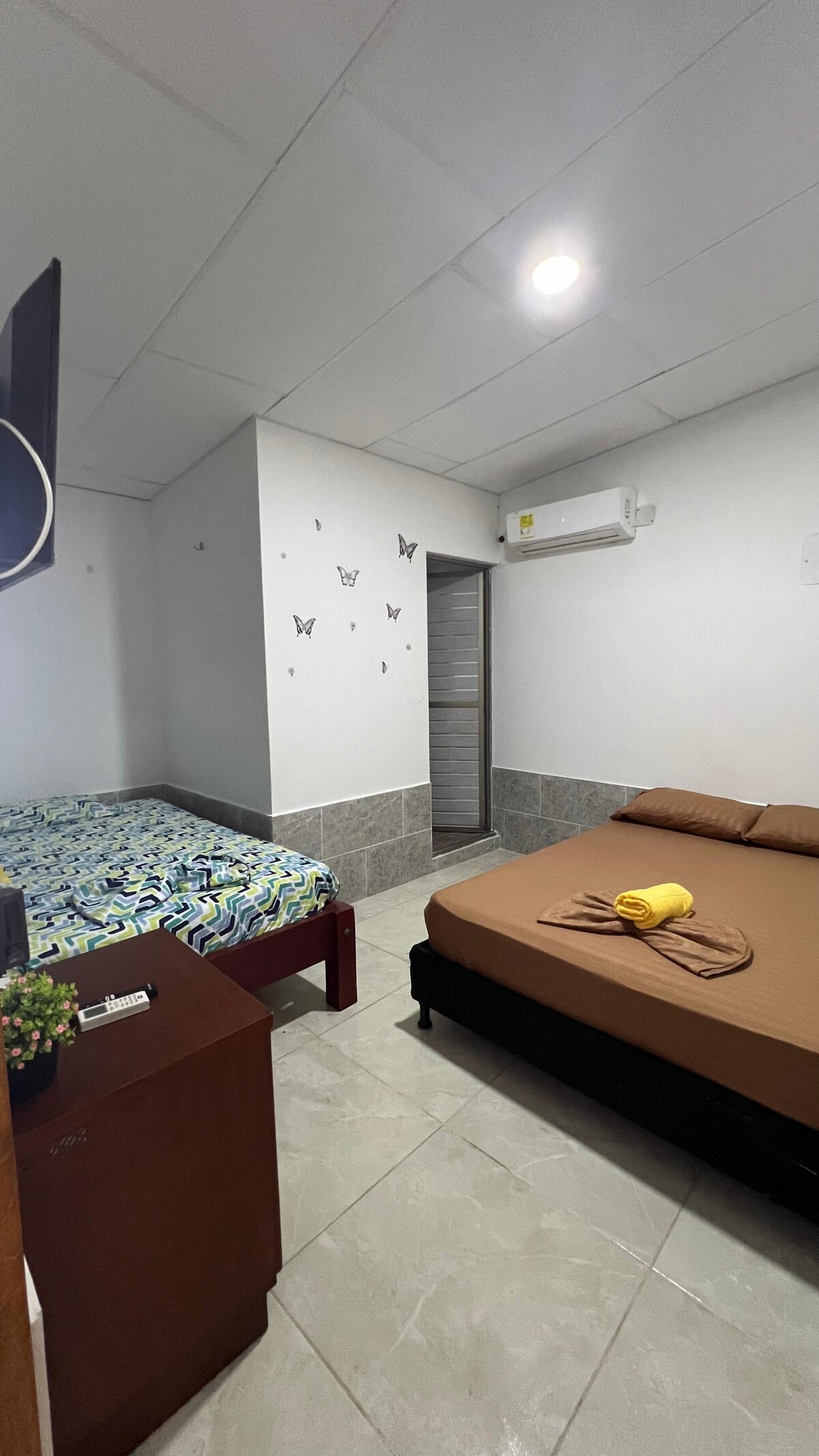 Habitaciones privadas para 1 o 4 personas, incluye cama doble, camarote, baño privado, aire acondicionado y TV. A sólo una cuadra del mar, frente al edificio Arrecifes Coveñas. Sí, es en Coveñas (primera ensenada). Cercano al mar y todo lo que necesitas para un buen descanso, contamos con servicio de restaurante ☀️