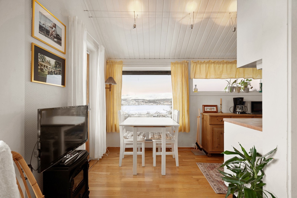 Καλωσορίσατε στο γοητευτικό διαμέρισμά μας με την υπέροχη θέα, που βρίσκεται σε έναν από τους ήσυχους αλλά κεντρικούς δρόμους του Τρόμσο. Μόλις 5-7 λεπτά με τα πόδια από το κέντρο του Τρόμσο. Είναι κοντά στη στάση λεωφορείου, το χιονοδρομικό κέντρο, την πισίνα, το γυμναστήριο, τις περιηγήσεις για να δείτε το βόρειο σέλας, τα ψώνια και τις υπαίθριες παιδικές χαρές, τα καφέ και τα εστιατόρια είναι πολύ κοντά. Είτε είστε εδώ για να εξερευνήσετε την Αρκτική, να δείτε το Βόρειο Σέλας ή απλά να χαλαρώσετε, το κατάλυμά μας είναι η ιδανική βάση για τη διαμονή σας.