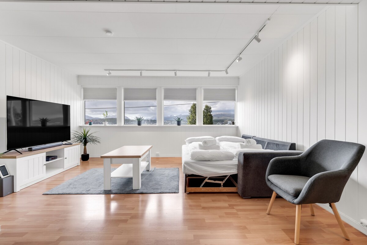 Δροσερό και μοντέρνο διαμέρισμα με υψηλές προδιαγραφές! Κοντά στη φύση για ορεινές περιηγήσεις, σκι και κωπηλασία. Κάντε καγιάκ, πηγαίνετε στις πιο τραχιές - ή πιο εύκολες - βουνοκορφές με ράντονι ή με τα πόδια. Tromsøs νυχτερινή ζωή με φανταστικά εστιατόρια λίγα λεπτά μακριά. 12 λεπτά από το αεροδρόμιο, 14 λεπτά από το μεγαλύτερο εμπορικό κέντρο της Βόρειας Νορβηγίας και 20 λεπτά από την πόλη. Μεγάλη ευκολία κατάστημα 4 λεπτά μακριά. Ούτε φώτα, ούτε κίνηση, ούτε άσφαλτος.