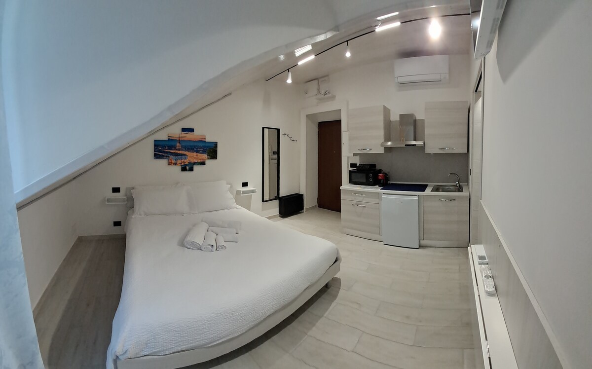 Un'elegante Suite nel centro di Torino, wi-fi fibra ottica, park gratuito a 400m, 10 minuti da stazione Porta Susa, collocato al piano terreno di un signorile palazzo, in una tranquilla via con numerosi parcheggi. Monolocale caldo e funzionale, perfetto per coppie o per famiglie fino a 4 persone. Letto matrimoniale nel soppalco e divano letto matrimoniale in zona giorno. Bagno moderno privato uso esclusivo, cucina attrezzata e con lavastoviglie, climatizzatore, ampi armadi, biancheria inclusa.