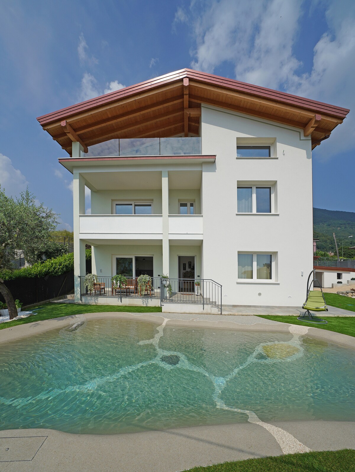 "Gardenia" is an energy-efficient house, built entirely of ecologically valuable materials. Excellent thermal insulation, airconditioned, earthquake resistant. Own private patio and garden with table, chairs and sunbeds. Surrounded by a 15 acre private estate of meadow and olive trees. 8x4 m pool. 2 km from Salò, an historic old town on the south west coast of Lake Garda, embedded in a large bay with the longest promenade of any town on the lake, ideal for shopping and strolling around.