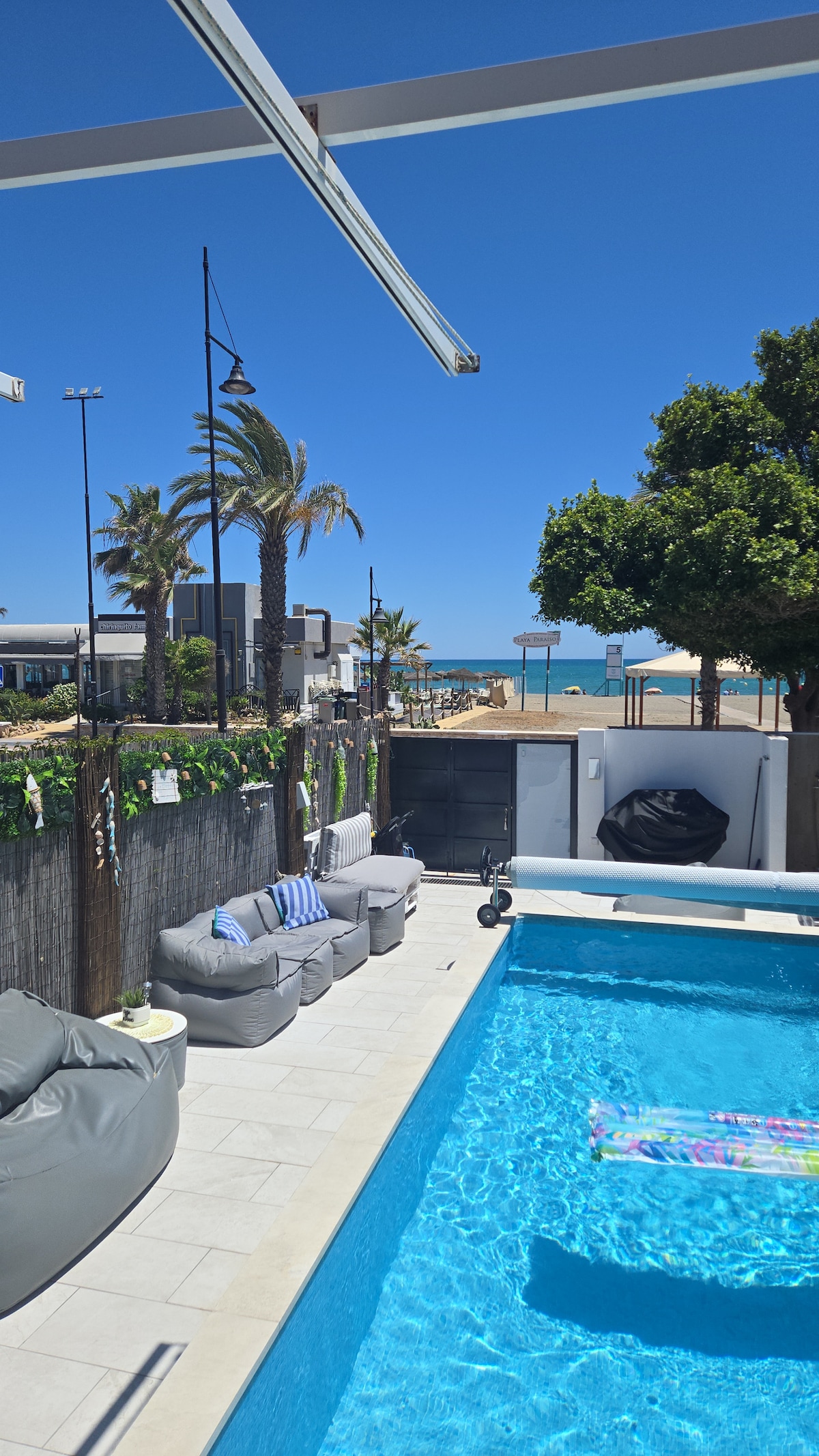 Σπίτι ακριβώς πάνω στην παραλία με ιδιωτική πισίνα και βεράντα με άμεση θέα στη θάλασσα. Για έως 8 άτομα. Στο ισόγειο βρίσκεται το σαλόνι και η τραπεζαρία, η τουαλέτα των επισκεπτών και η τραπεζαρία. Στον επάνω όροφο υπάρχουν 2 κύρια υπνοδωμάτια, το ένα με ιδιωτικό μπάνιο και ένα άλλο μπάνιο και 2 επιπλέον υπνοδωμάτια με 2 μονά κρεβάτια το καθένα. 5 λεπτά από το μεγάλο εμπορικό κέντρο Plaza Major-Outlet. Αεροδρόμιο 2 χλμ. Εστιατόρια, παραλιακά κλαμπ, υδάτινες δραστηριότητες και γήπεδο γκολφ σε κοντινή απόσταση, λίγα μέτρα μακριά. Σιδηροδρομικός σταθμός 300 μ.