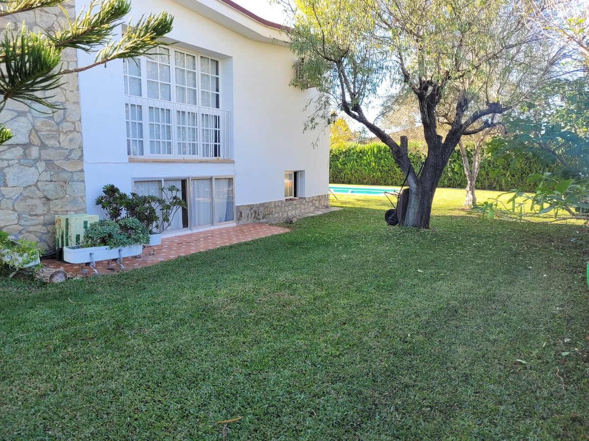 Σύγχρονο σπίτι με νέα πισίνα σε ιδιωτικό οικισμό με κοινόχρηστους χώρους για αθλητισμό και αναψυχή. 800 m2 ανεξάρτητου οικοπέδου Βρίσκεται 15 λεπτά από το αεροδρόμιο της Σεβίλλης και 5 χιλιόμετρα από τον αυτοκινητόδρομο Α-4 Διώροφο σπίτι (με ανελκυστήρα για αναπηρικά αμαξίδια): ισόγειο με μπάνιο και ανακαινισμένη κουζίνα, σαλόνι με τζάκι και σαλόνι-σολάριουμ. Άνω όροφος με σαλόνι, 3 υπνοδωμάτια, πλήρως ανακαινισμένο μπάνιο και ταράτσα Κλιματισμός στο σαλόνι, στο ισόγειο και σε κάθε δωμάτιο.