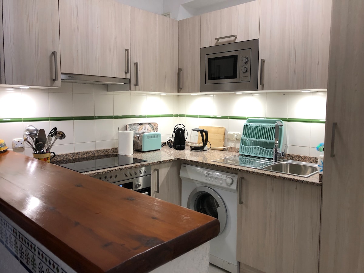 Χαλαρώστε σε αυτό το διαμέρισμα δύο δωματίων με υπέροχη θέα στη θάλασσα, κεντρική τοποθεσία, φωτεινό, με ανατολικό προσανατολισμό και πολύ κοντά στην παραλία Torrecilla. Αυτό το διαμέρισμα δύο δωματίων για ΔΎΟ ΆΤΟΜΑ βρίσκεται στον τελευταίο όροφο ενός κτιρίου με ασανσέρ, είναι καλοφτιαγμένο, καλά εξοπλισμένο και περιβάλλεται από καταστήματα, μπαρ και εστιατόρια. Έχει μια μεγάλη πισίνα πολυκατοικίας που περιβάλλεται από ένα δροσερό γκαζόν και μπουκαμβίλιες. Θα έχετε όλα όσα χρειάζεστε για την πισίνα και την παραλία (πετσέτες παραλίας, καρέκλες, ομπρέλα).