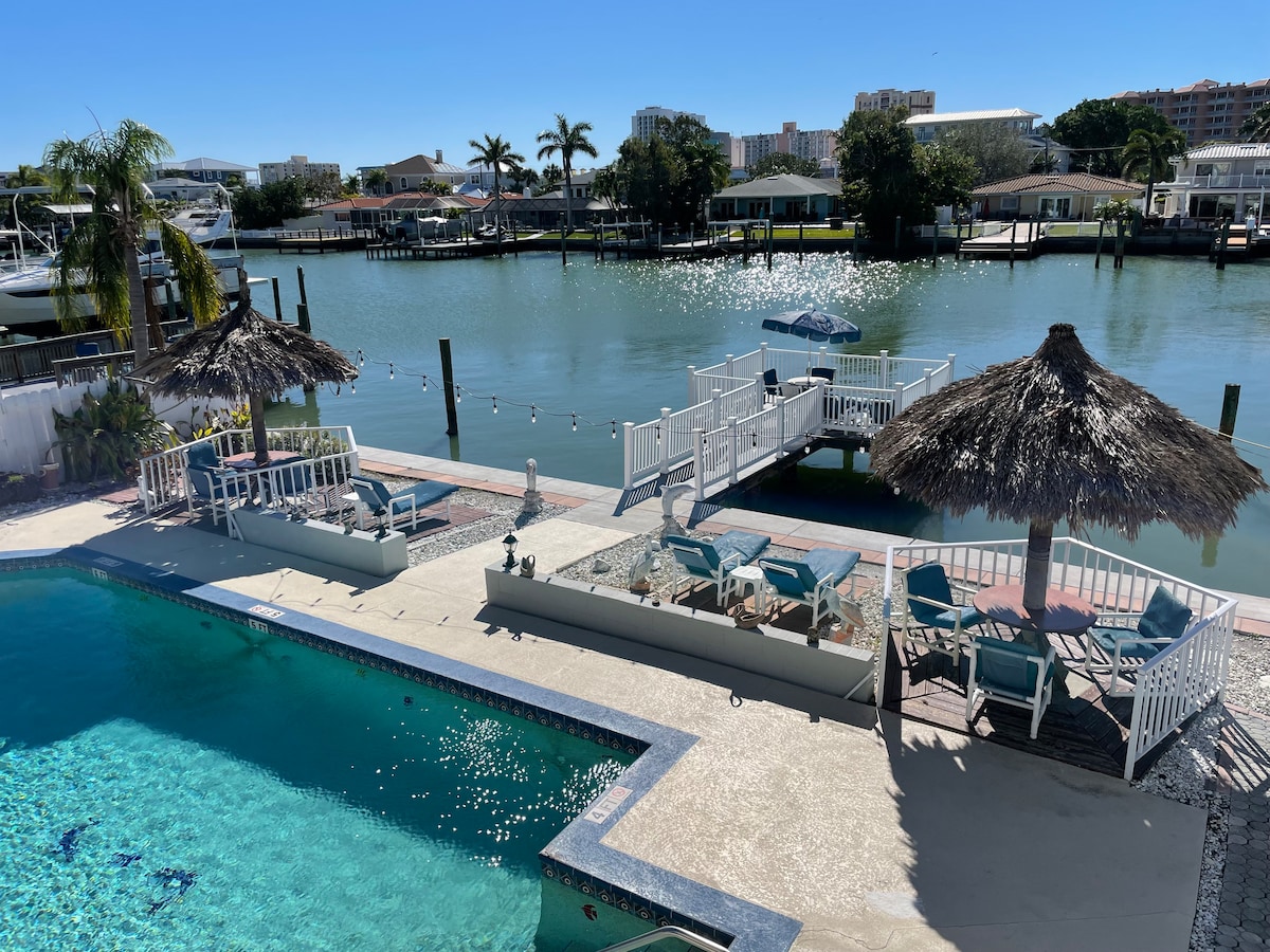 Διαμέρισμα δίπλα στην πισίνα στην παραλία Clearwater. Αυτό το διαμέρισμα σε στιλ στούντιο απέχει μόλις λίγα τετράγωνα από τη διάσημη παραλία Clearwater Beach & Pier 60 στα ενδοακτικά ύδατα στη βάση της γέφυρας Sand Key. Κοντά σε παραλία, εστιατόρια και καταστήματα. Θα λατρέψετε την ήσυχη περιοχή! Μόλις 3 βήματα από την πισίνα! Clearwater Beach Yacht club & σκάφη έξω από την πόρτα σας! Καναπές-κρεβάτι, επίπεδη οθόνη 55", καρέκλες και ομπρέλα παραλίας, καλάμια ψαρέματος, ψυγείο, πάρκο. Δείτε τις κριτικές μας, κάνουμε ό,τι καλύτερο μπορούμε για να παρέχουμε όλα τα αντικείμενα που χρειάζονται οι επισκέπτες μας