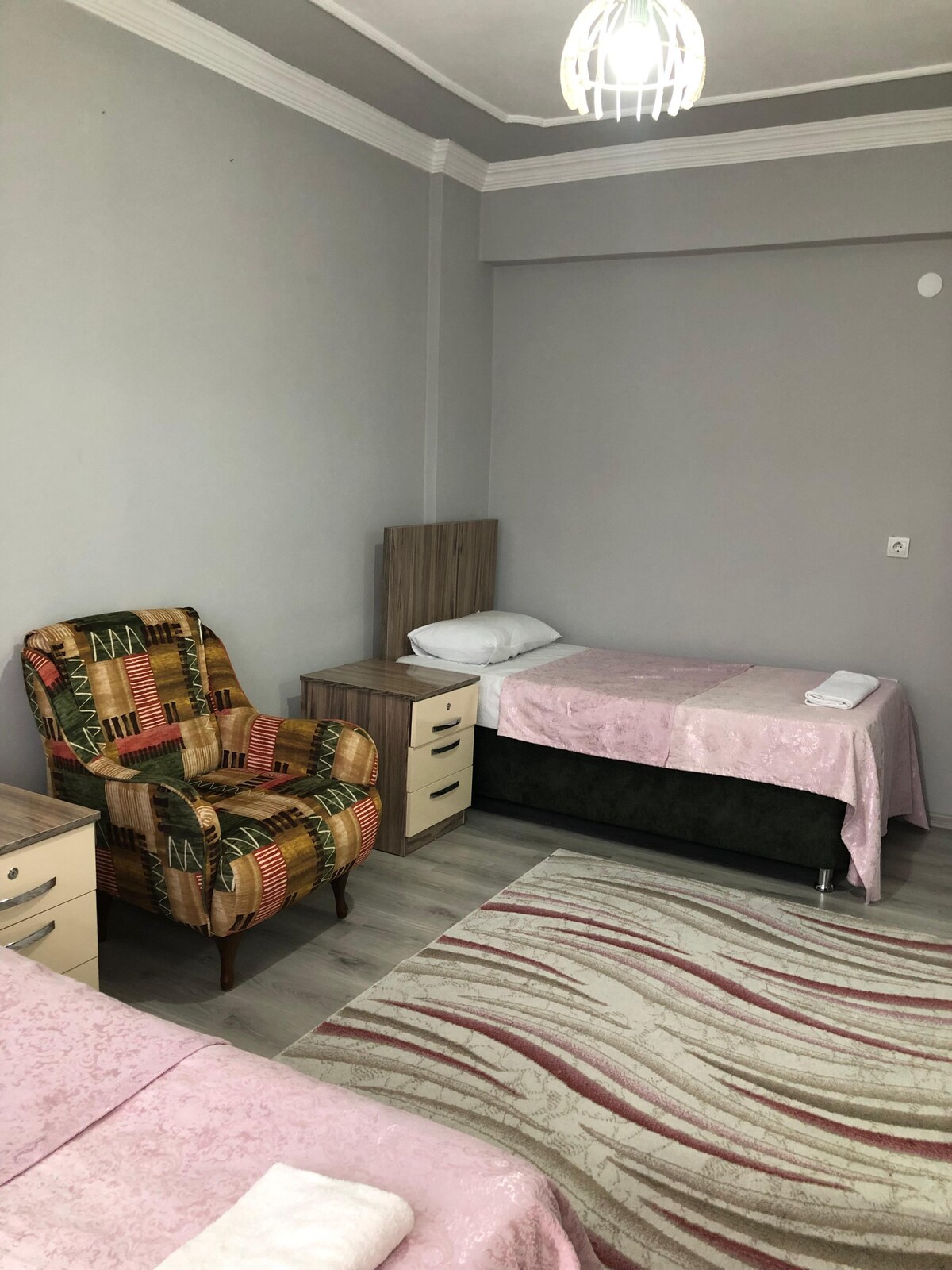 Υπάρχουν 3 δωμάτια στον όροφο. Κάθε δωμάτιο διαθέτει κλιματισμό, ντουλάπα, μίνι ψυγείο, μπάνιο και τουαλέτα. Υπάρχουν 3 διπλά κρεβάτια και 1 μονό κρεβάτι συνολικά. Μπορεί να φιλοξενήσει 7 άτομα. Αυτός ο αριθμός μπορεί να είναι 9 άτομα με επιπλέον κρεβάτι ( επί πληρωμή ). Ταυτόχρονα, το δωμάτιο κλειδώνει στις πόρτες. Υπάρχει μια επιπλέον δυνατότητα κρεβατιού. Το διαμέρισμα του ξενοδοχείου μας απέχει 500 μέτρα από το αεροδρόμιο της Τραπεζούντας. Το παντοπωλείο απέχει 20 μέτρα. Οι καφετέριες και τα εστιατόρια απέχουν 250 μέτρα.