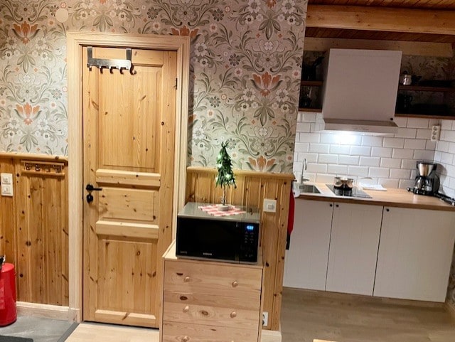 Μοναδικό κατάλυμα στο Husom – 10 χιλιόμετρα νότια του χιονοδρομικού κέντρου Kläppen. Ένα προσεκτικά σχεδιασμένο ξύλινο σπίτι όπου η σύγχρονη αρχιτεκτονική συναντά την αυθεντική αίσθηση της Dala. Εδώ ζείτε με τη φύση πολύ κοντά, με τη λίμνη, το δάσος και το ήρεμο βουνό ακριβώς δίπλα. Στο κατάλυμα, υπάρχει επίσης μια σάουνα με ξύλα, ιδανική για χαλάρωση μετά από μια μέρα στα βουνά. Οι χώροι ύπνου αποτελούνται από 3 μονά κρεβάτια (μπορούν να ενωθούν για να γίνει ένα διπλό κρεβάτι) στον επάνω όροφο/σοφίτα καθώς και έναν καναπέ-κρεβάτι πλάτους 140 εκ. στο σαλόνι.