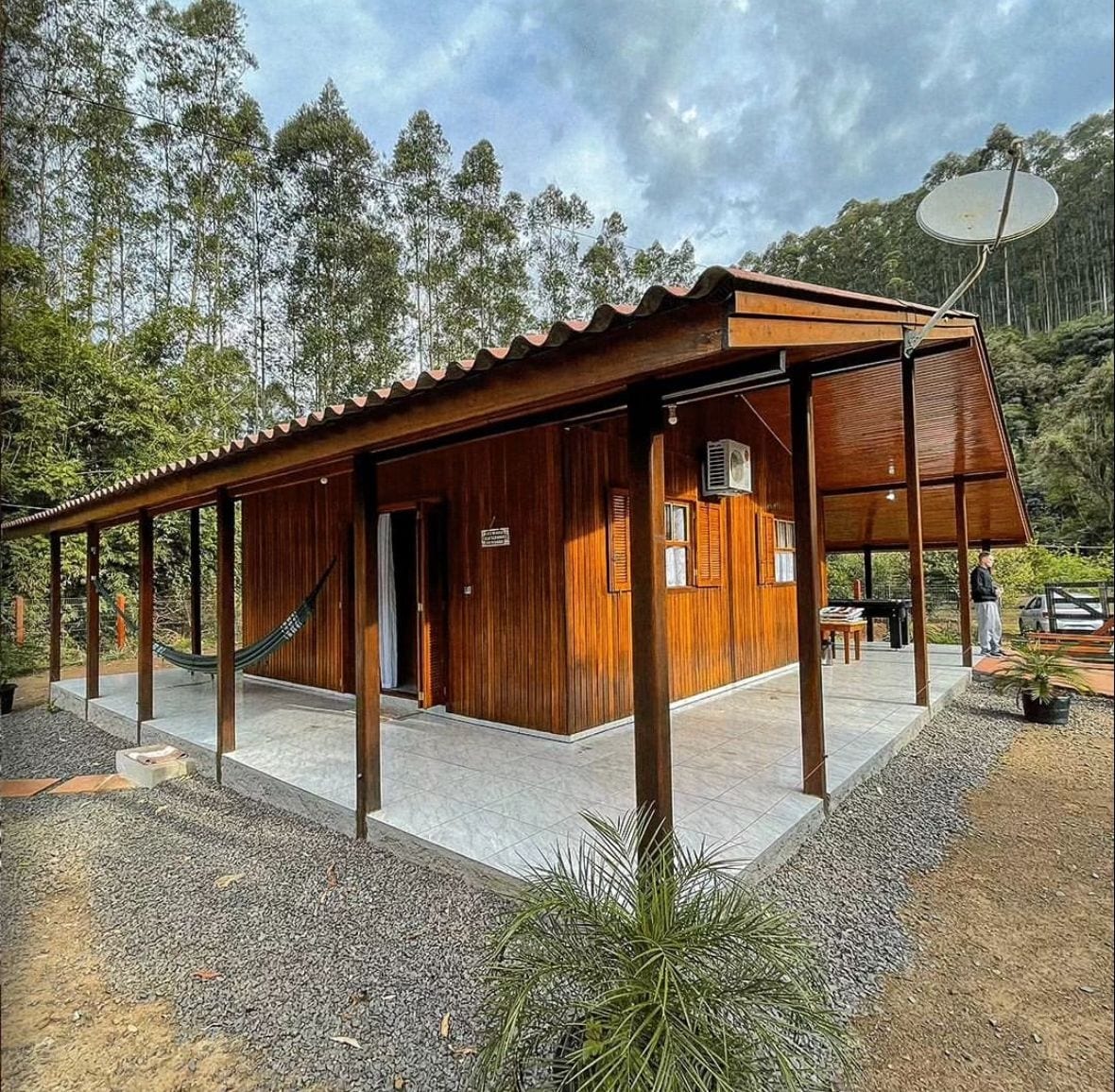 Ξύλινο σαλέ για εσάς και όλη την οικογένειά σας, με άφθονο χώρο για να διασκεδάζουν τα παιδιά. Απολαύστε μια απίστευτη εμπειρία με αυτό το μέρος που περιβάλλεται από δέντρα, ένα ευχάριστο κλίμα για να ξεκουραστείτε, συνδεόμενοι με τη φύση σε στιγμές ηρεμίας και γαλήνης. Παρέχει άνεση με ξύλινη σόμπα, αιώρες για χαλάρωση, βεράντα στην αυλή, τζάκι. 2 υπνοδωμάτια, 1 μπάνιο, σαλόνι με τηλεόραση και κουζίνα (πλήρης με πιάτα και συσκευές), Wi-Fi. Εξωτερικός χώρος με μπάρμπεκιου και μπιλιάρδο. 1 χλμ. από την RS-115.
