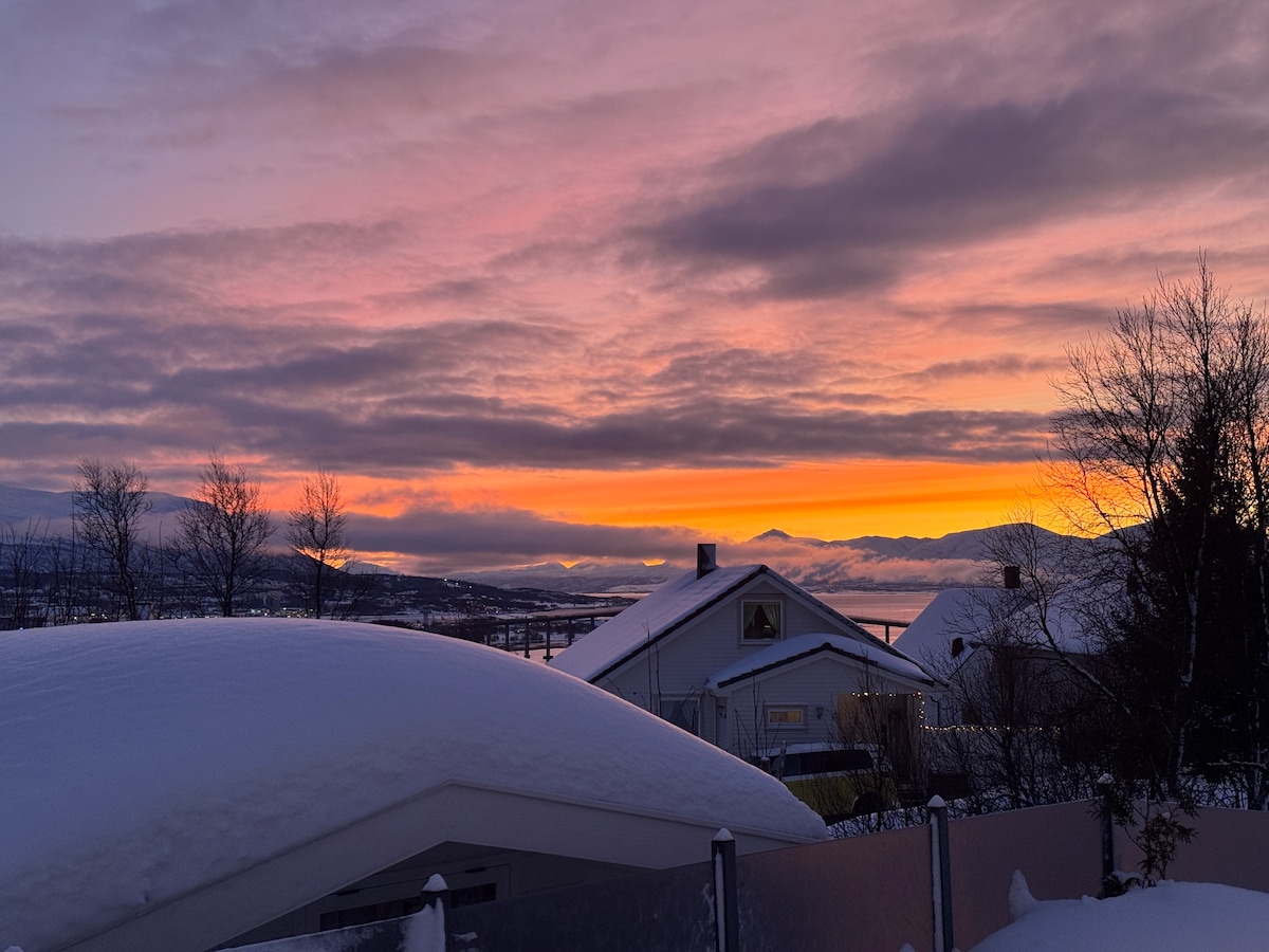 Φανταστείτε να ξυπνάτε σε ένα άνετο διαμέρισμα στην Αρκτική, με απαλό φως που αντανακλά τις χιονισμένες κορυφές και τα ήσυχα φιόρδ. Φτιάχνετε καφέ, βγαίνετε έξω και ο καθαρός αέρας του βουνού γεμίζει τα πνευμόνια σας. Τα μονοπάτια ξεκινούν από την πόρτα σας — για σκι, πεζοπορία ή απλά ηρεμία. Καθώς πέφτει η νύχτα, το βόρειο σέλας μπορεί να χορεύει από πάνω, ζωγραφίζοντας τον ουρανό με πράσινο και μοβ χρώμα. Και αν είστε τυχεροί, μπορεί να δείτε ταράνδους να περιφέρονται στον κήπο. Μόλις 15 λεπτά από το Τρόμσο και 5 λεπτά από το αεροδρόμιο - αυτή είναι η ζωή στην Αρκτική στο πιο μαγικό της σημείο.