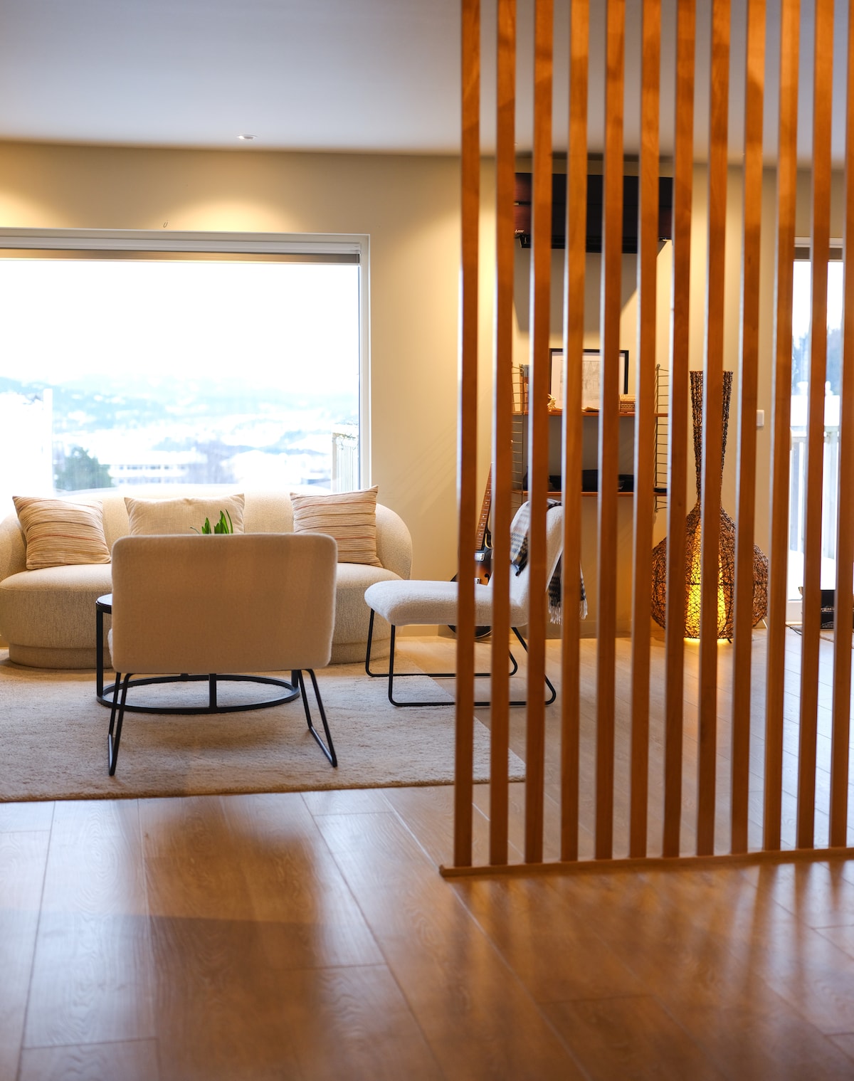 This beautiful apartment has with its big modern windows a lot of natural light all day long. The area and neighborhood are really quiet. It is located close to NTNU, the river Nidelva, the lake Theisendammen, the train station, and several bus stops. It is also located ten minutes away from the center of Trondheim. Included you have free parking. The apartment have a security door and is located at the ground floor (high first floor) of a really modern and calm building.