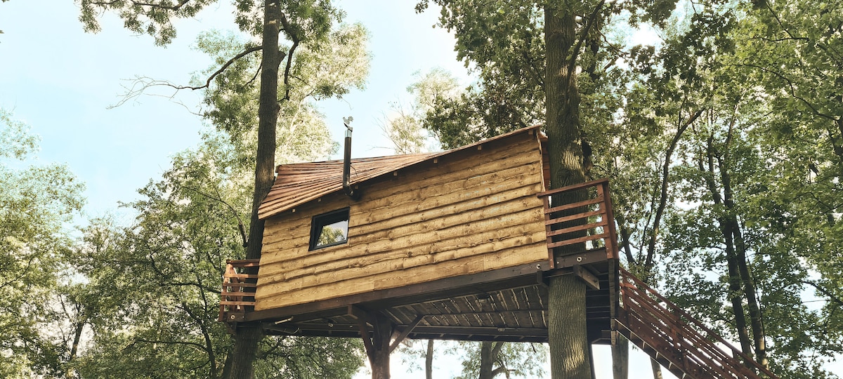 When was the last time you spent an unforgettable night in a real treehouse - in addition a triangular one? Our house is located in a small park in the countryside, near a very low-traffic street, next to fields, with a soothing view of the forest. The old-growth forest where you will find yourself adds a special charm to the place and creates a unique atmosphere. Massage or holistic therapies can be offered on site - please inquire in advance for availability.