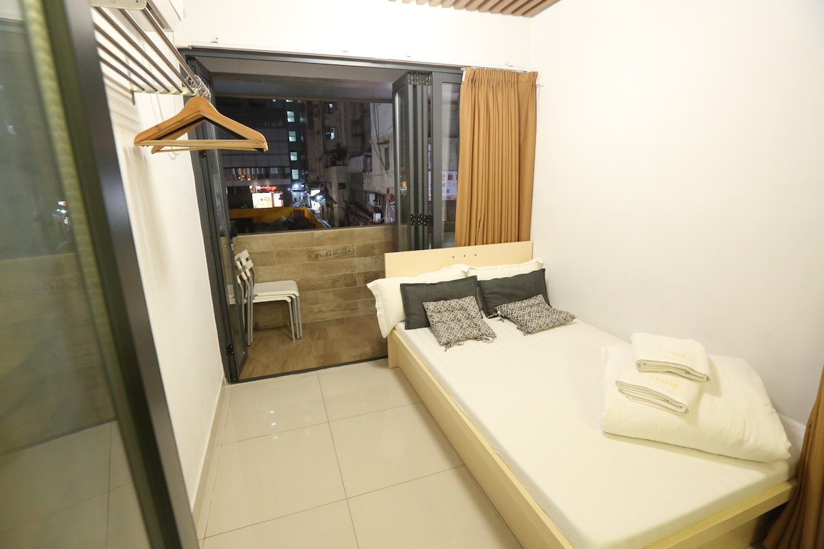 T1CC兩個寢室2小陽台/廟街夜市,佐敦站A出口5分鐘,自助入住