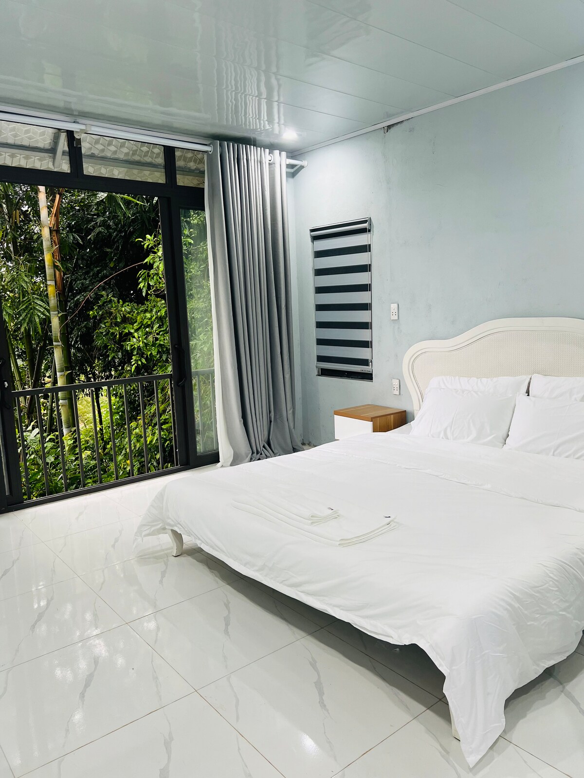 Το ξύλινο δωμάτιο βρίσκεται στην αριστερή πλευρά του οικογενειακού σπιτιού της κυρίας Tien, προσφέροντας ιδιωτικότητα και κοντινή απόσταση από την οικογένεια του οικοδεσπότη. Το δωμάτιο έχει σχεδιαστεί με ξύλινα υλικά και παραδοσιακή οροφή από φοίνικες, με ένα κρεβάτι στον πρώτο όροφο και ένα κρεβάτι-σοφίτα, κατάλληλο για μια μικρή τετραμελή οικογένεια ή ένα ζευγάρι. Έξω από το δωμάτιο υπάρχει μια ευρύχωρη αυλή με θέα στον κήπο με ένα μικρό τραπέζι τσαγιού, παρέχοντας έναν ήσυχο χώρο για να απολαύσει όλη την οικογένεια τον πρωινό αέρα και το φως του ήλιου.