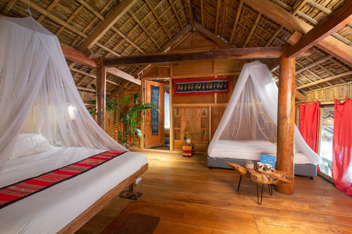 Mai Chau οικολογικό κατάλυμα οικογενειακό δωμάτιο θέα στο βουνό