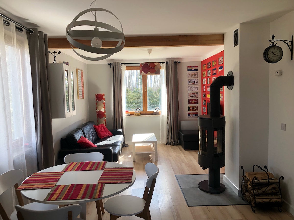 Ένα αποκλειστικό σπίτι σε ένα μεγάλο οικόπεδο, μια άμεση έξοδος προς το δάσος από τον κήπο. Προσφέρουμε 5 υπνοδωμάτια, σαλόνι, τραπεζαρία, πλήρως εξοπλισμένη κουζίνα και 3 μπάνια. Έχουμε 17 κρεβάτια συνολικά. Το ακίνητο διαθέτει κιόσκι, τζάκι και παιδική χαρά. Ξύλινη θερμαινόμενη δεξαμενή, το κόστος καθορίζεται ξεχωριστά.