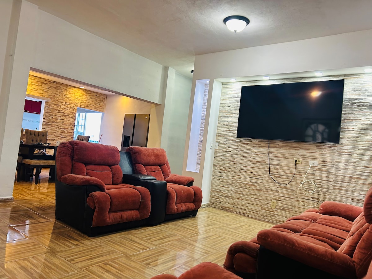 Χαλαρώστε με όλη την οικογένεια σε αυτό το κατάλυμα όπου η ηρεμία είναι αισθητή, λίγα τετράγωνα από το θέρετρο La Cantera, ιδανικό για μεγάλες οικογένειες ή ανθρώπους που έρχονται να εργαστούν σε εταιρείες της περιοχής. Διώροφο σπίτι με 5 υπνοδωμάτια, όλα με ντουλάπι, γραφείο, 4 διπλά κρεβάτια, 1 κρεβάτι Queen, 2 καναπέδες-κρεβάτια στο σαλόνι, Smart TV 43", 50mb internet, 2 πλήρη μπάνια, πλυσταριό, χώρος στάθμευσης για 1 αυτοκίνητο μέσα και άλλο ένα στην ιδιωτική είσοδο, ηλεκτρική πύλη.
