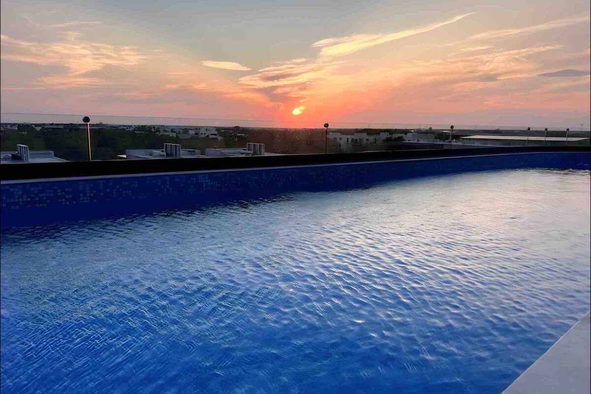 Εκπληκτικό διαμέρισμα σοφίτα με άμεση πρόσβαση σε πισίνες, κοντά στο κέντρο του Τουλούμ και μόλις λίγα λεπτά από την εντυπωσιακή παραλία και τα παραλιακά κλαμπ του Τουλούμ. Απολαύστε αρκετές εκπληκτικές πισίνες, πισίνα στον τελευταίο όροφο, ξαπλώστρες, ωραίο γυμναστήριο, προσωπικό 24 ώρες το 24-ωρο, ισχυρό κλιματιστικό, ασανσέρ, γρήγορο wifi (400 Mbps), κουρτίνες συσκότισης, έξυπνη τηλεόραση 55", πλήρως εξοπλισμένη κουζίνα και ιδιωτικό χώρο στάθμευσης. Απολαύστε γεύματα σε εξωτερικό χώρο ή απλά ποτά με πανοραμική θέα στο εστιατόριο στην ταράτσα.