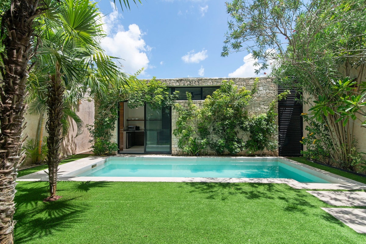 Our villa with a private plunge pool is located in the middle of the Mayan jungle inside Dos Ojos Cenote Park. It is surrounded by cenotes among them, the famous Dos Ojos and Sac Actum. The luxuriant nature and the peaceful vibes will allow you to relax as never before. You'll be waking up with the sounds of birds and enjoy the jungle sounds in a very safe and comfortable house.