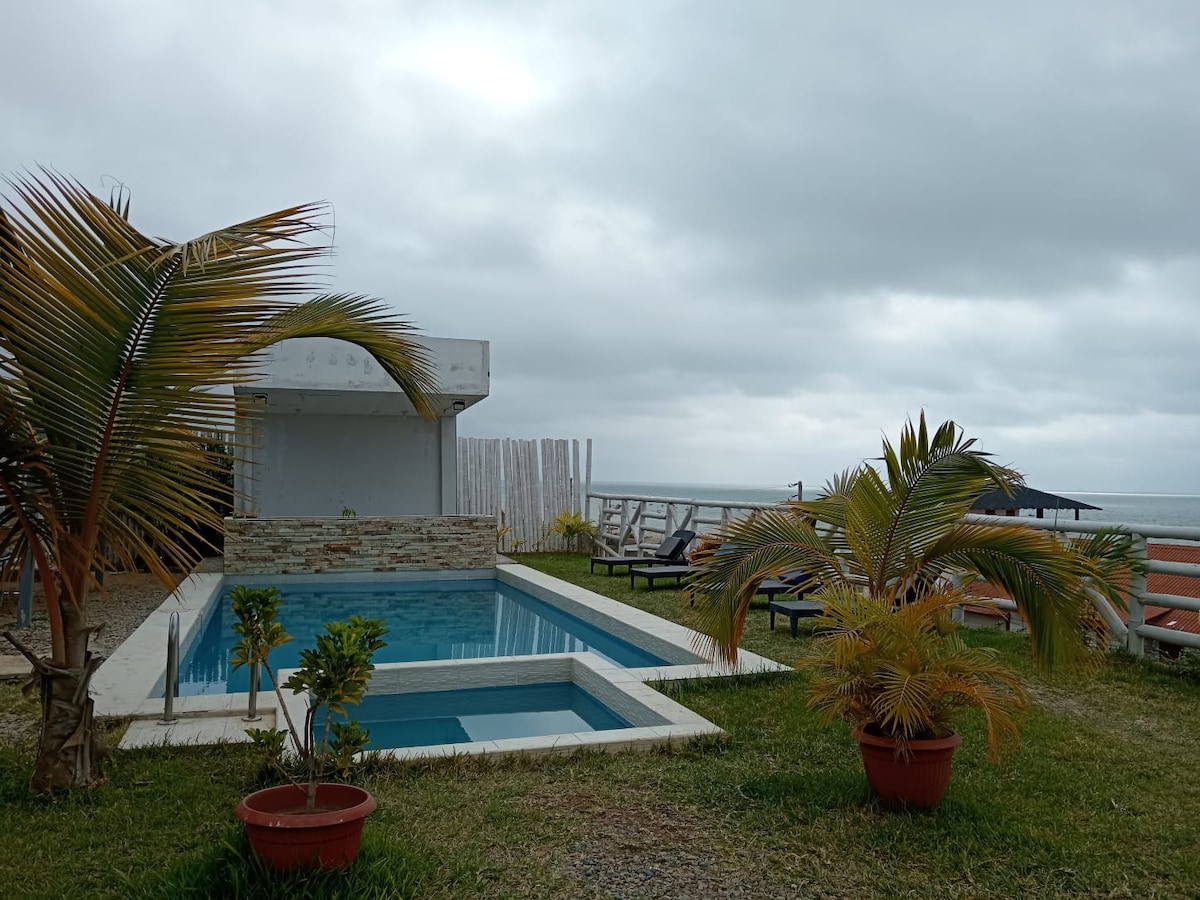 Casa de playa frente al mar - LA CASA DE PEDRO. Alquiler en Zorritos - Perú. Piscina privada con increíble vista al océano, terraza, parrilla, family room, amplio comedor. Mar tranquilo y atardeceres cálidos. A solo 35 minutos del aeropuerto de Tumbes Perfecto para desconectarse de todo. Total huéspedes 14 personas. dormitorios con A/C 11 camas (3 matrimoniales). 4 baños completos y 1 medio baño.