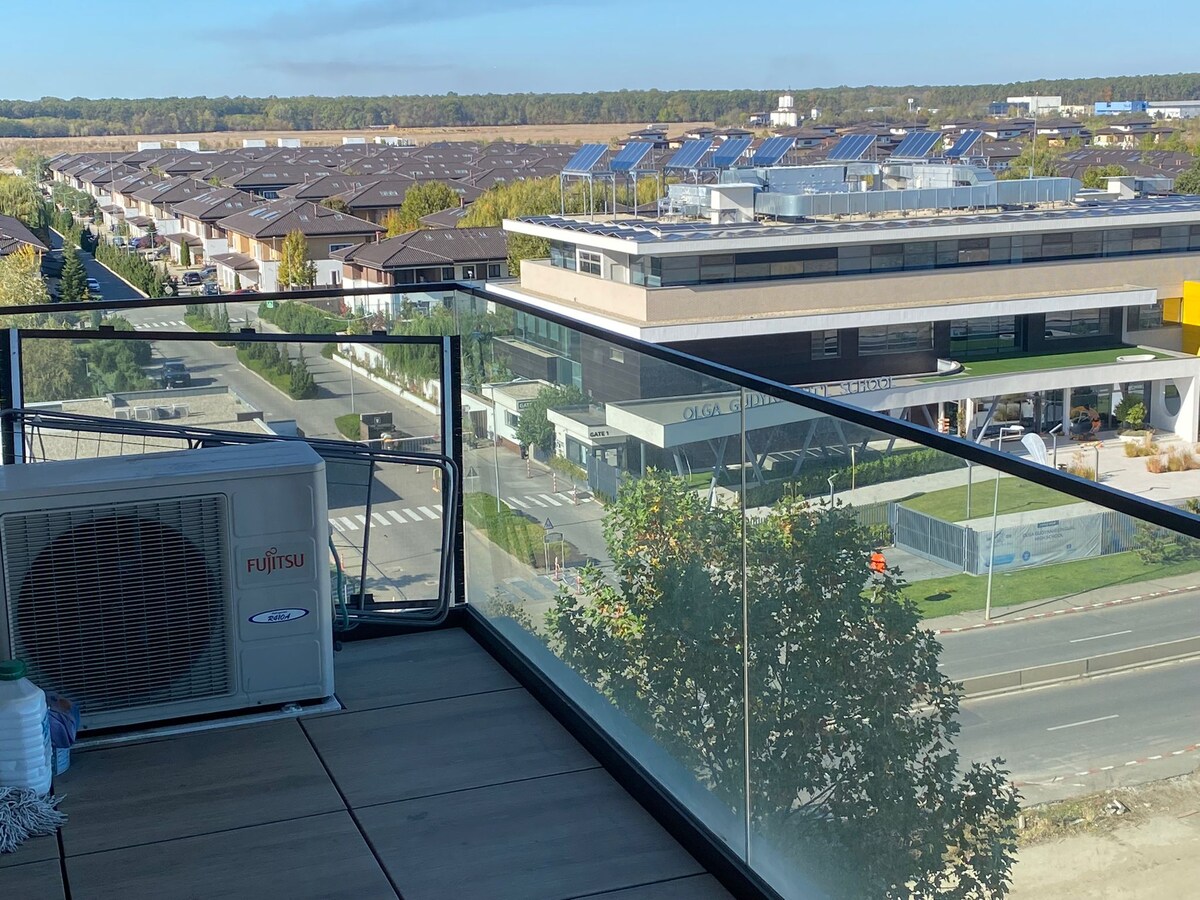 Καλώς ήρθατε σε ένα μοντέρνο, προσεκτικά σχεδιασμένο διαμέρισμα στο Otopeni–Tunari. Απολαύστε έναν φωτεινό χώρο καθιστικού, πλήρως εξοπλισμένη κουζίνα, άνετο υπνοδωμάτιο με κλινοσκεπάσματα ποιότητας ξενοδοχείου και κομψό, μοντέρνο μπάνιο. Βρίσκεται σε μια ήσυχη κατοικημένη γειτονιά, μόλις 5 χιλιόμετρα από το Διεθνές Αεροδρόμιο Otopeni και 10 χιλιόμετρα από το Αεροδρόμιο Băneasa, είναι ιδανικό για επαγγελματικά ταξίδια ή χαλαρωτικές αποδράσεις. Το άνετο σπίτι σας μακριά από το σπίτι σας.