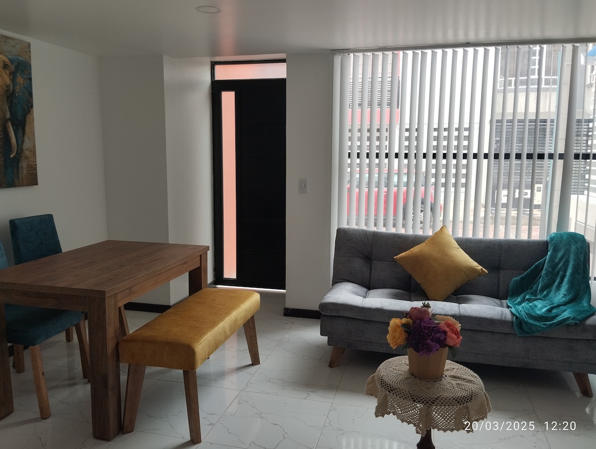 Πρόσφατα ανακαινισμένο διαμέρισμα, όλα τα έπιπλα είναι καινούργια. Βρίσκεται ενάμιση τετράγωνο από την Plaza de Bolivar, στο ιστορικό κέντρο της Tunja, σε μικρή απόσταση με τα πόδια από το Κυβερνείο Boyacá, το γραφείο του δημάρχου και τις τράπεζες. Το διαμέρισμα είναι εξοπλισμένο με όλα όσα χρειάζεστε για μια ευχάριστη διαμονή: ψυγείο, φούρνο μικροκυμάτων, καφετιέρα, μαγειρικά σκεύη, φούρνο, τηλεόραση, wifi και ζεστό νερό.