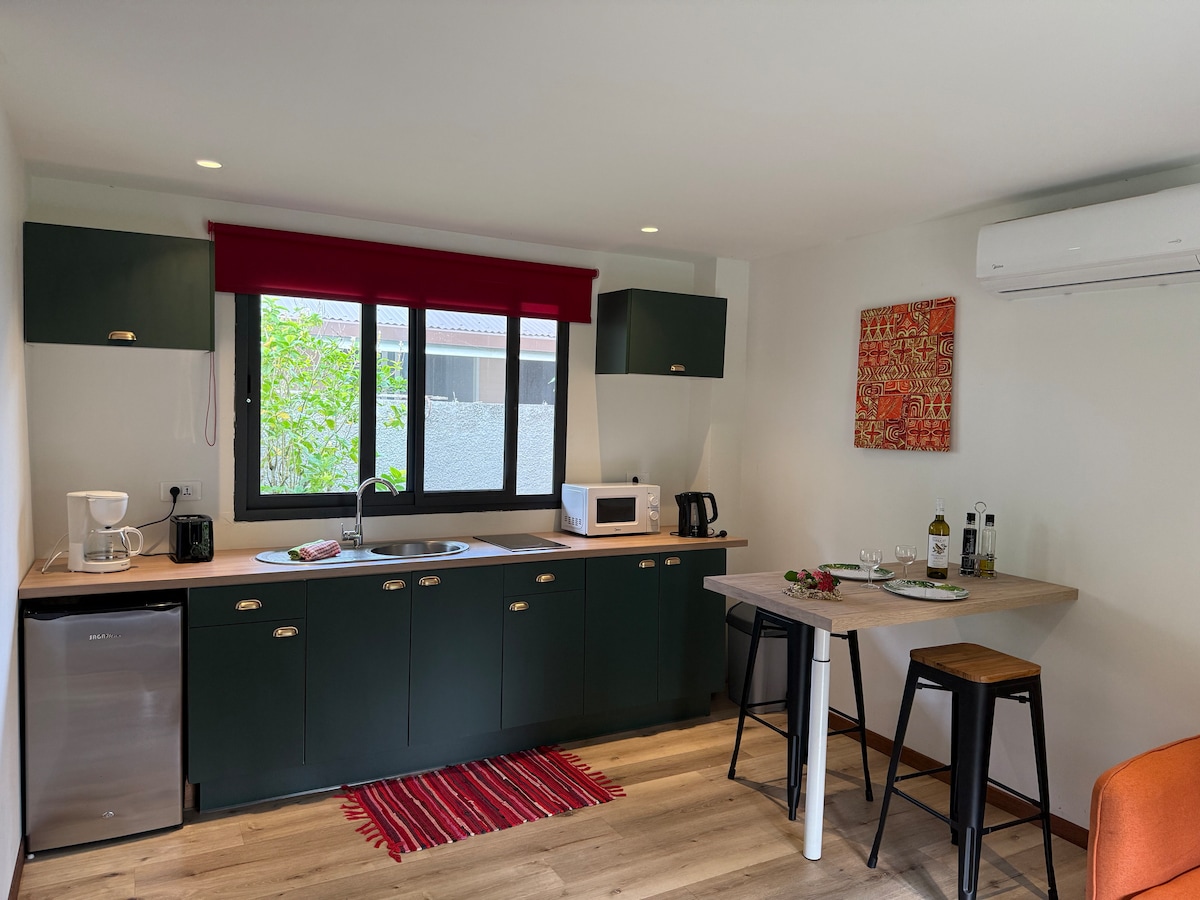 Θα μείνετε στην καρδιά ενός μοντέρνου διαμερίσματος με θέα σε έναν τροπικό κήπο που βρίσκεται στην άκρη της λιμνοθάλασσας. Η κατοικία βρίσκεται ένα χιλιόμετρο με τα πόδια από τα λεωφορεία και το πλοίο. Ενοικίαση ποδηλάτων, σούπερ μάρκετ, εστιατόρια βρίσκονται σε κοντινή απόσταση. Θα έχετε πρόσβαση στην παραλία όπου μπορείτε να κάνετε κατάδυση με αναπνευστήρα και να ανακαλύψετε τη λιμνοθάλασσα με τα καγιάκ μας στη διάθεσή σας δωρεάν. Εξοπλισμένο με όλα όσα χρειάζεστε για μια άνετη διαμονή.