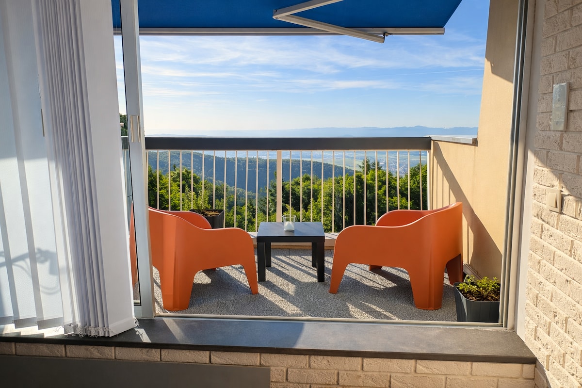 Location beau Gîte de 2 personnes sur les hauteurs de Turckheim avec une magnifique et grande terrasse et vue sur la plaine. Appartement tout équipé sur la route des vins, proche de colmar, Riquewihr, Eguisheim ... Et pour les randonneurs à 2 pas de la vallée de munster. Un petit chien peut etre admis sur demande avant la réservation .
