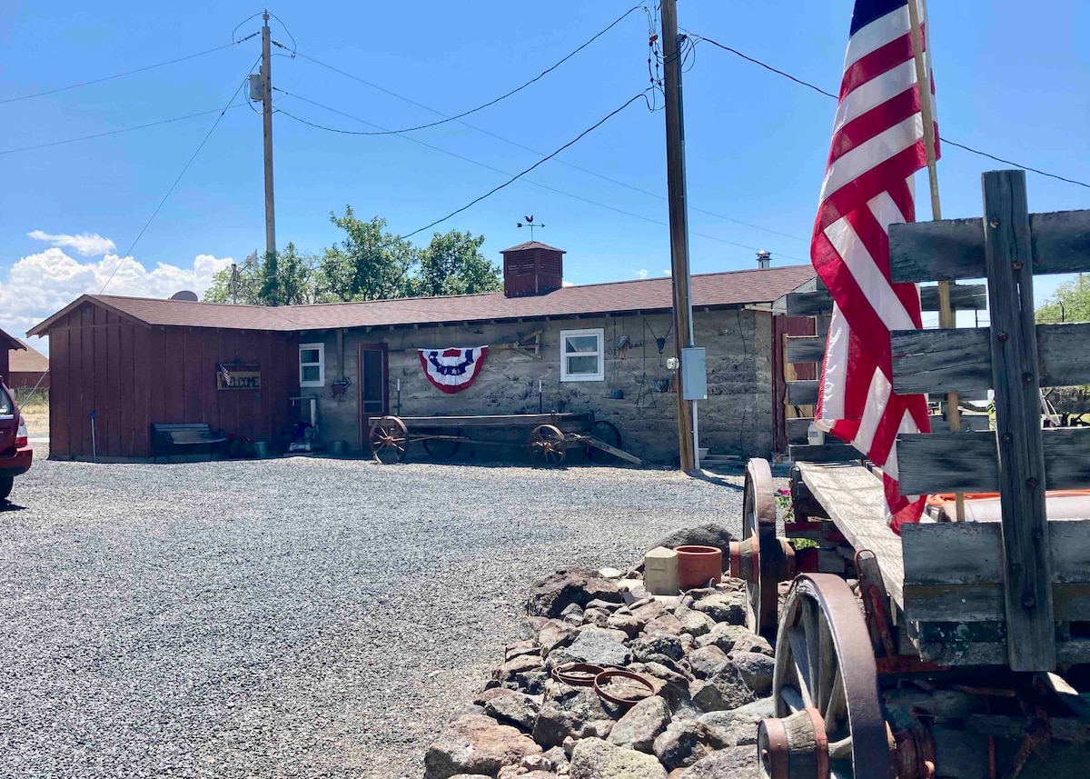 Ήσυχος ξενώνας μόλις 5 λεπτά από το κέντρο του Twin Falls. Η ιδιοκτησία μας 3 στρεμμάτων έχει μια περιφραγμένη είσοδο που μοιράζεται με το σπίτι μας. Όμορφη θέα από το μπροστινό παράθυρο με τα κυματιστά χωράφια, τις αγελάδες που βόσκουν και τους νότιους λόφους. Ο ξενώνας περιβάλλεται από μια μικρή περιφραγμένη αυλή με τζάκι προπανίου, κούνια δέντρου και καρέκλες. Η οικογένειά μου και εγώ μένουμε δίπλα και θα χαρούμε να σας βοηθήσουμε με ό, τι χρειαστείτε κατά τη διάρκεια της επίσκεψής σας στο Twin Falls.