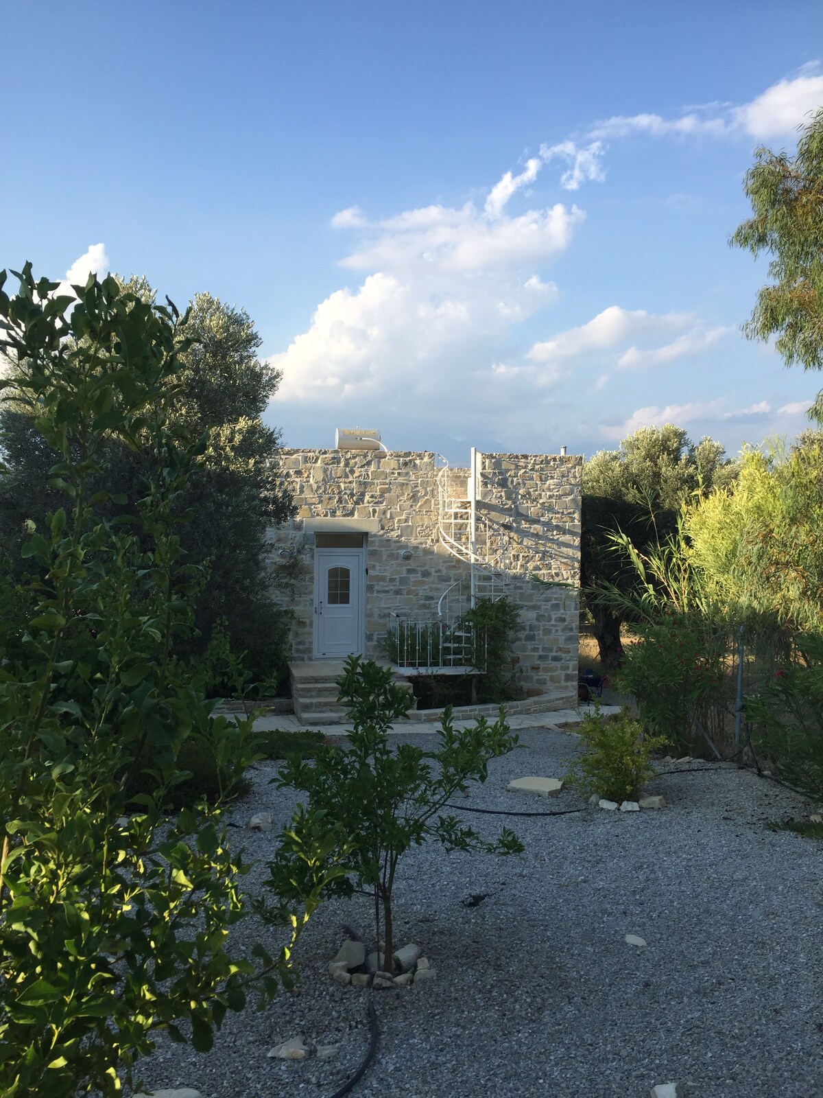 Surrounded by olive trees and with a breathtaking panoramic view, this solar powered house will not cease to surprise you! Kitchen and living room are not separated by any wall and this creates an open and comfortable environment. We grow our food in an organic way and we have 8 chickens and 2 goats, which provide us with fresh milk and eggs every day. So don't waste your time in crowded resorts and boring apartments. Come stay at our home, meet our charming goats and experience something new!