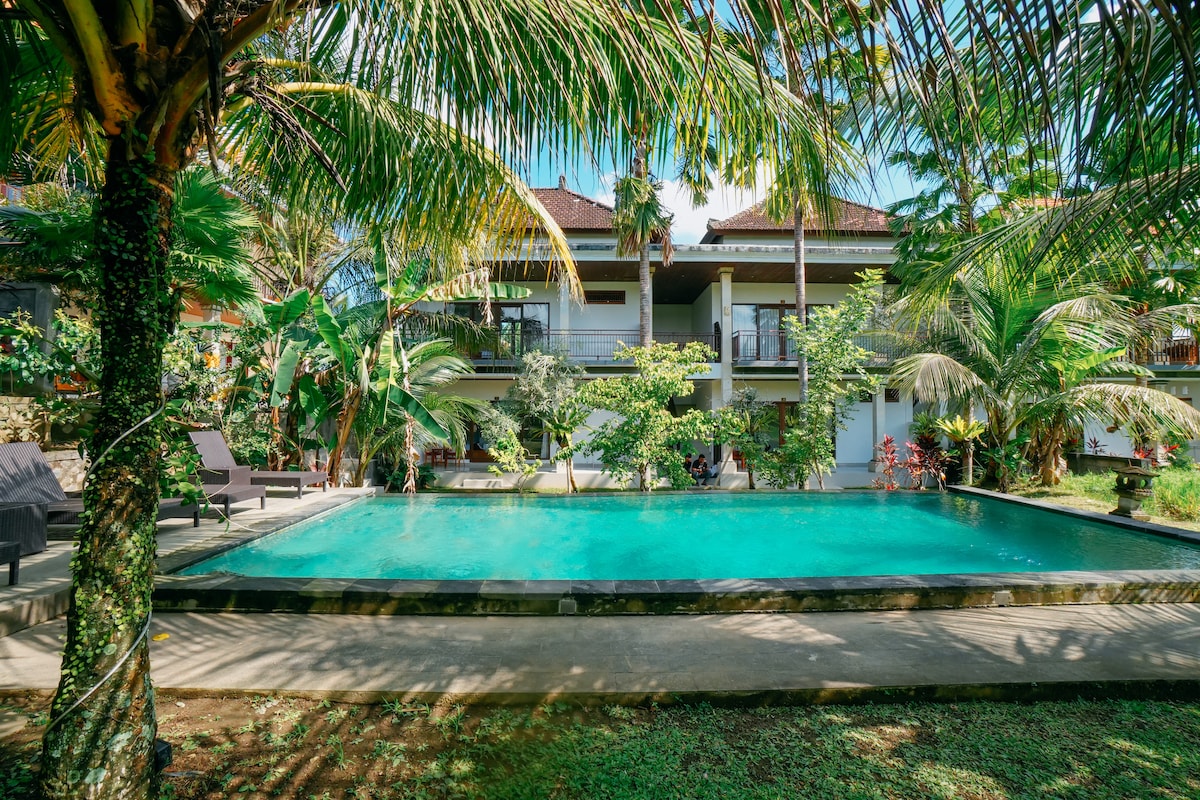 Βρίσκεται στο κέντρο της πόλης Ubud, μόλις 5 λεπτά με τα πόδια στον κεντρικό δρόμο της Ubud. Παρέχει καταλύματα όπως πισίνα, πολυτελές μπάνιο, δωρεάν Wi-Fi (πολύ γρήγορα) και 24ωρη ρεσεψιόν. Η σουίτα μας μπορεί να έχει μπαλκόνι ή άμεση θέα στην πισίνα. Αν έχετε κάποια προτίμηση, μη διστάσετε να μας ενημερώσετε και θα κλειδώσουμε την προτίμησή σας. Για τη διαμονή σας περιλαμβάνεται πρωινό! Τα δωμάτια είναι εξοπλισμένα με κλιματισμό, ηλεκτρική τσαγιέρα, τηλεόραση επίπεδης οθόνης και ιδιωτικό πολυτελές μπάνιο.