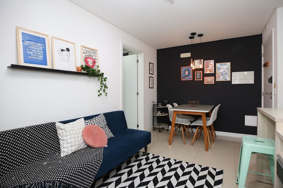 Μοντέρνο και πλήρες στούντιο στη Viva Trindade, μία από τις πιο στρατηγικές τοποθεσίες του Φλοριανόπολις. Μπροστά από το UFSC. Δίπλα στο εμπορικό κέντρο Vila Romana. Σουπερμάρκετ Angeloni στο ισόγειο του κτιρίου. Καφετέριες και εστιατόρια στην ίδια την πολυκατοικία. Ιδανικό για όσους θέλουν πρακτικότητα, χωρίς να χρειάζονται αυτοκίνητο. Το στούντιο προσφέρει: Άνετο διπλό κρεβάτι Wifi Έξυπνη τηλεόραση Γυμναστήριο Πλυντήριο ρούχων στο κτίριο Χώρος για κατοικίδια Κάντε κράτηση και απολαύστε την εμπειρία διαμονής σε ένα από τα πιο ολοκληρωμένα μέρη στην Τρινταντέ.