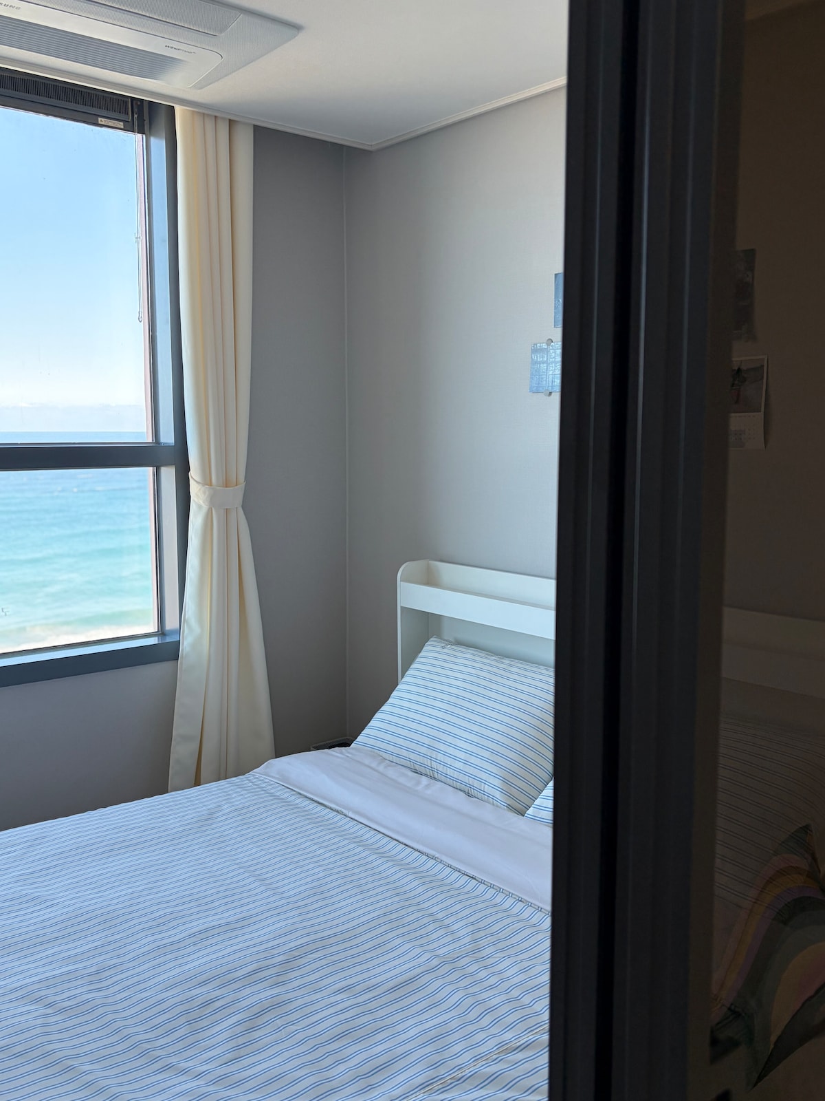 🏖 바다가 바로 보이는 편안한 숙소입니다. 👟 도보 3분 거리에서 시원한 밤바다를 산책할 수 있고, 넓은 주차공간과 동해 이곳저곳을 도보로 즐기실 수 있습니다. 🏢 호텔 건물내 이마트 편의점이 입점되어 있고, 헬스장과 탁구,당구와 같은 스포츠 시설도 이용 가능합니다. 🛏 우리 숙소는 13층에서 침대에 누워서 바다가 한눈에 보이는 오션뷰를 즐길 수 있습니다. 넓은 퀸사이즈 침대 2개, 밥솥과 전자레인지가 설치된 주방이 준비되어있습니다.
