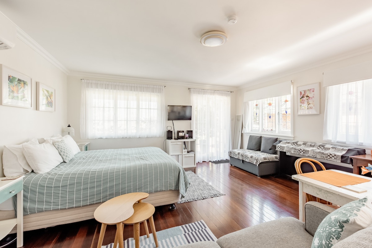 In the heart of Cambewarra Village you'll be staying at a light and airy, charming one room studio complete with a country kitchenette, vintage styled ensuite and front deck. Perfect for couples or friends or a solo traveller wanting a break away from the everyday. Cambewarra Village is 10 minutes from the town centre of Nowra and 15 minutes from the picturesque towns of Kangaroo Valley and Berry. A great base for all seasons as you explore the beautiful Shoalhaven region.