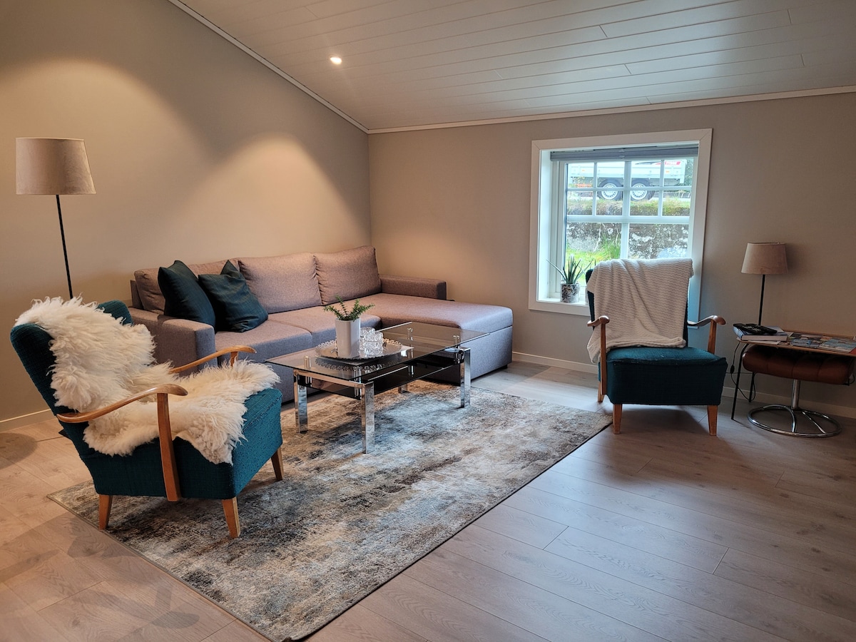 Το διαμέρισμα βρίσκεται στο δικό του ξεχωριστό μέρος του σπιτιού, με τη δική του είσοδο στην κορυφή του σπιτιού, και με τη δική του έξοδο στο πίσω μέρος του σπιτιού, όπου είναι περίπου 50 μέτρα κάτω από τη θάλασσα. Έχετε πρόσβαση στη λίμνη, αλλά υπάρχει ένας φράχτης γύρω από το σπίτι όπου βόσκουν τα πρόβατα τους καλοκαιρινούς μήνες. Υπάρχουν επίσης κότες ελεύθερης βοσκής γύρω από το σπίτι. Ιδιωτικά καθίσματα και στις δύο πλευρές του διαμερίσματος και ιδιωτικός χώρος στάθμευσης. Η κουζίνα έχει όλα όσα χρειάζεστε για το κανονικό μαγείρεμα.
