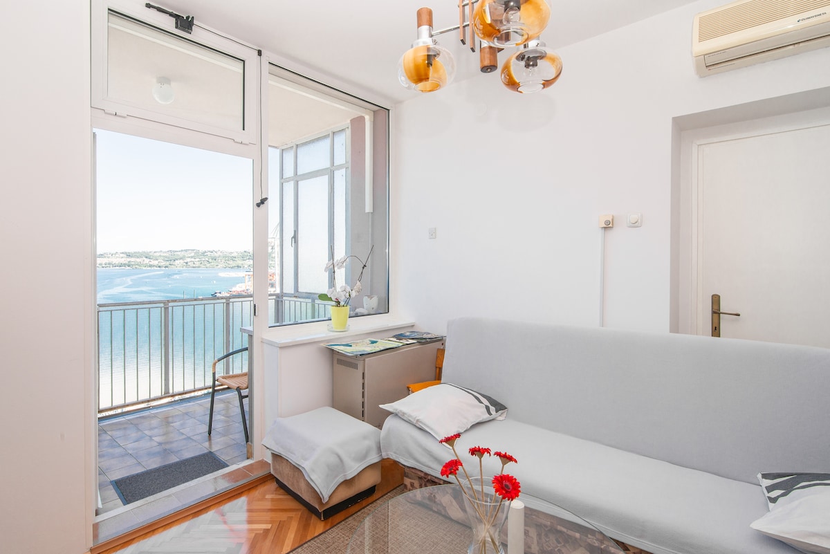 Το διαμέρισμα Milena βρίσκεται ακριβώς πάνω από τη θάλασσα με μία από τις πιο όμορφες απόψεις του λιμανιού του Koper, της Τεργέστης, των Άλπεων και των Δολομιτών. Με μόλις πέντε λεπτά με τα πόδια από την παραλία, το διαμέρισμα βλέπει νότια με 180o θέα στην Αδριατική. Είναι ένα ιδανικό αστικό περιβάλλον διακοπών, που βρίσκεται στην παλιά πόλη του Κόπερ στο κτίριο του ένατου ορόφου, προσβάσιμο με ασανσέρ. Είναι πλήρως κλιματιζόμενο, όμορφα επιπλωμένο και καλά εξοπλισμένο. → 2BR για 4 w/Μπαλκόνι & AC → Χώρος στάθμευσης 20m μακριά