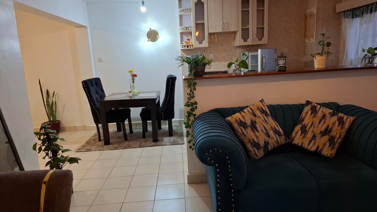 Ο χώρος του May είναι ένα άνετο, πλήρως επιπλωμένο διαμέρισμα για check-in χωρίς παρουσία οικοδεσπότη που βρίσκεται στο κτήμα Embakasi Nyayo κοντά στο αεροδρόμιο JKIA. Όμορφα επιπλωμένο με άνετο διπλό κρεβάτι, πλήρως εξοπλισμένη κουζίνα, μπάνιο με ζεστό ντους, γρήγορο wifi, Netflix, χώρο πλυντηρίου, ασφαλές πάρκινγκ. Γυμναστήριο, σπα, πιτσαρία και μίνι μάρκετ σε κοντινή απόσταση. 10 χιλιόμετρα από το αεροδρόμιο, κοντά στο Nairobi Express Way και το τρένο του Ναϊρόμπι. Η μονάδα βρίσκεται σε ένα πολύ γαλήνιο περιβάλλον.