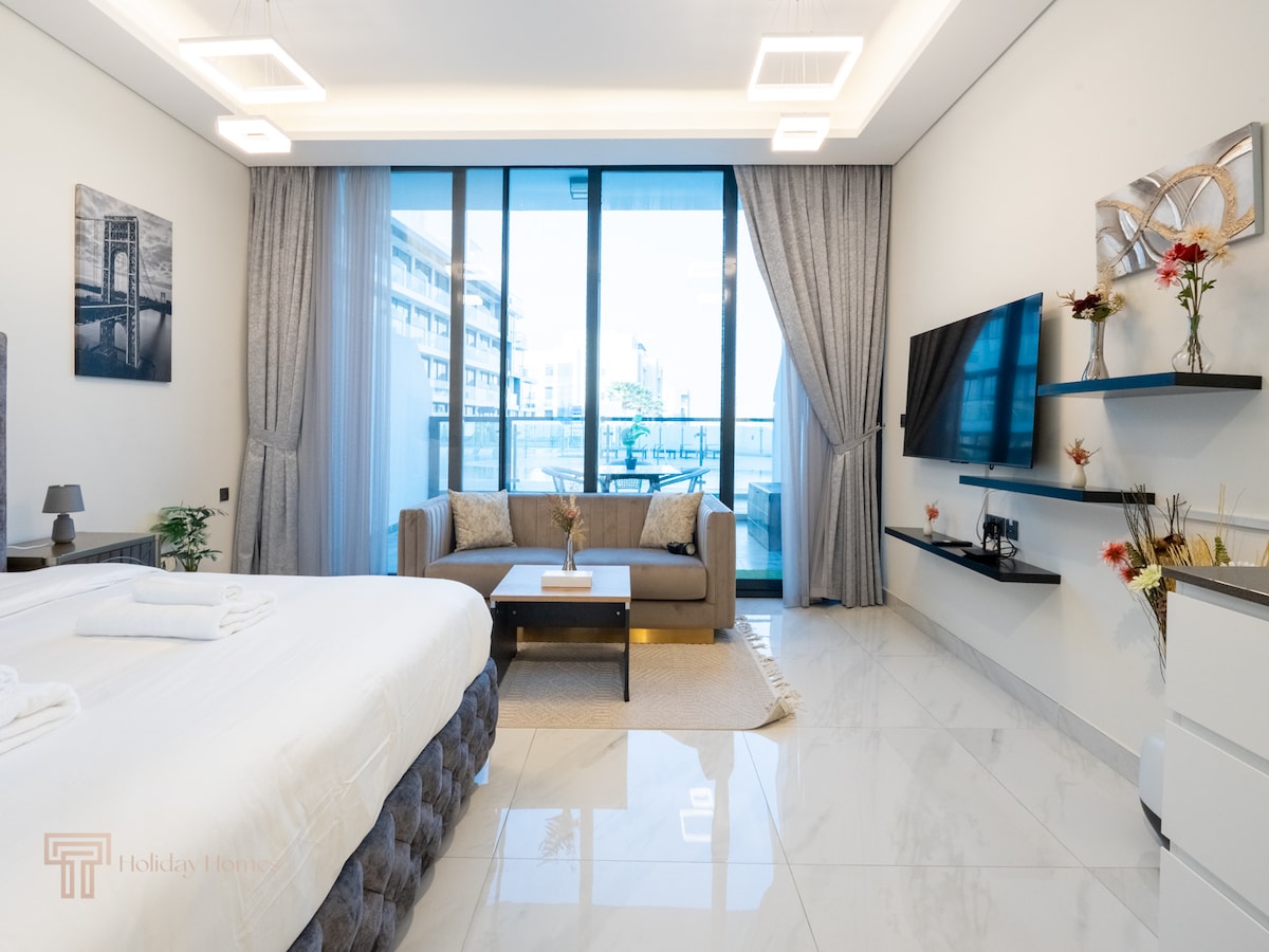 Μείνετε σε ένα κομψό διαμέρισμα 1 υπνοδωματίου με θέα στον ορίζοντα στο JVC. Ιδανικό για ζευγάρια, σόλο ταξιδιώτες ή διαμονές για επαγγελματικούς σκοπούς. ✓ Ιδιωτικό μπαλκόνι με θέα στον ορίζοντα ✓ 1 υπέρδιπλο κρεβάτι Πρόσβαση σε✓ πισίνα και γυμναστήριο ✓ Πλήρως εξοπλισμένη κουζίνα WiFi ✓ υψηλής ταχύτητας ✓ Δωρεάν στάθμευση ✓ Check-in χωρίς παρουσία οικοδεσπότη ✓ 7 λεπτά για το ξενοδοχείο FIVE JVC ✓ Κοντά σε καταστήματα και εστιατόρια Ρωτήστε τώρα για εκπτώσεις μετεγκατάστασης και μακροπρόθεσμης διαμονής!