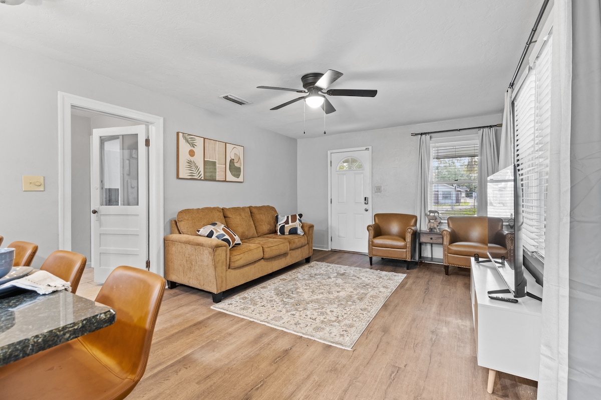Ένα αξιολάτρευτα γοητευτικό κατάλυμα με 2 υπνοδωμάτια/2 μπάνια που είναι φωτεινό, αέρινο, ήσυχο και φιλικό προς τα κατοικίδια! ☀️ Κεντρική τοποθεσία στην καρδιά όλων όσων έχει να προσφέρει το Gainesville ☀️ Διπλή κάτοψη με ιδιωτικό μπάνιο (υπέρδιπλα κρεβάτια) με κεντρικούς χώρους διαβίωσης ☀️ Ιδιωτική πλήρως περιφραγμένη πίσω αυλή ☀️ Φωτάκια και ιδιωτική εστία για φωτιά ☀️ Θολωτά ταβάνια και καλά εξοπλισμένη κουζίνα ☀️ Υψηλής ποιότητας, άνετα στρώματα και κλινοσκεπάσματα Wi-Fi ☀️ υψηλής ταχύτητας για τηλεργασία ☀️ Μονώροφο, χωρίς σκάλες ☀️ ΚΑΤΆΛΛΗΛΟ ΓΙΑ ΚΑΤΟΙΚΊΔΙΑ ☀️ 2 μίλια από το UF, το Ben Hill Stadium και το Shands