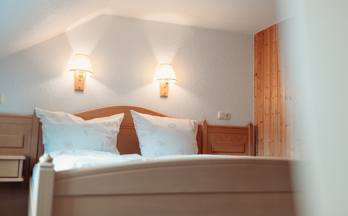 Δίκλινο δωμάτιο ειδικής τιμής για μία χρήση - κομψό, μοντέρνο δωμάτιο με διπλό κρεβάτι και ντους/WC, τηλεόραση. Γραφείο και γρήγορο ίντερνετ / WiFi έως 100 Mbit. Αφράτες πετσέτες, πιστολάκι για τα μαλλιά, χαρτί υγείας και σαπούνι από την Allgäuer Werkstätten.