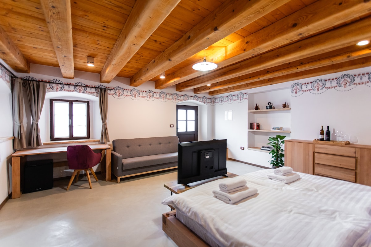 Located in the serene Vipava Valley, this homestead blends traditional and modern styles, offering a peaceful retreat. Guests can choose between 2 apartments, 1 suite and 4 rooms, each one unique with it’s own style and experience. Perfect for nature enthusiasts, history buffs, families and couples seeking a serene and luxurious retreat. On request, we can also prepare breakfast for you at an extra cost of €10/person/night. Please let us know before your arrival.