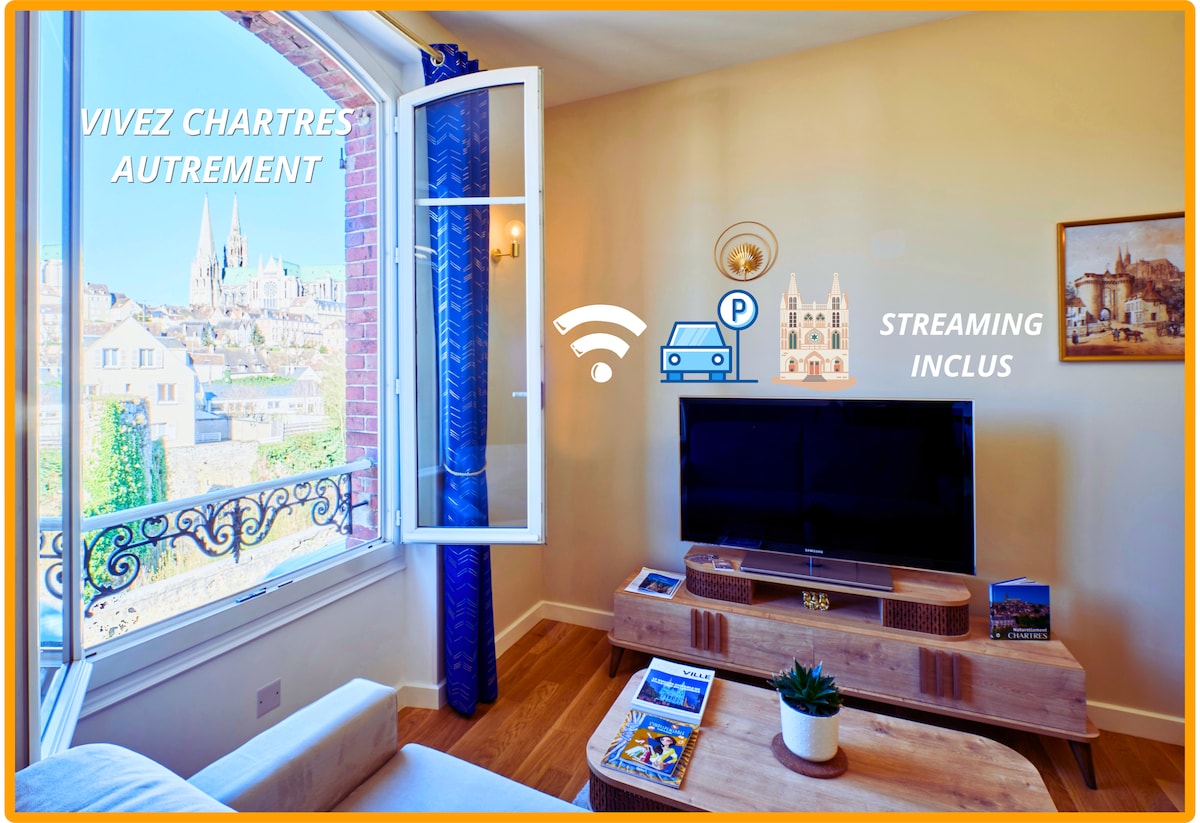 Καλώς ήρθατε στο La Porte Enchantée, ένα φωτεινό διαμέρισμα στην καρδιά του ιστορικού κέντρου του Σαρτρ. Θα απολαύσετε έναν ήσυχο και άνετο χώρο, προσεκτικά διακοσμημένο. Από το σαλόνι, η θέα στις στέγες της πόλης και στον καθεδρικό ναό προσφέρει ένα χαλαρωτικό σκηνικό, ιδανικό για χαλάρωση ή εργασία. Τοποθετημένο στο Porte Guillaume, το διαμέρισμα σάς επιτρέπει να φτάσετε στο κέντρο της πόλης με τα πόδια σε λίγα λεπτά. Τα δωρεάν λεωφορεία στα πόδια του κτιρίου διευκολύνουν την πρόσβαση στον σιδηροδρομικό σταθμό και στο κέντρο της πόλης.