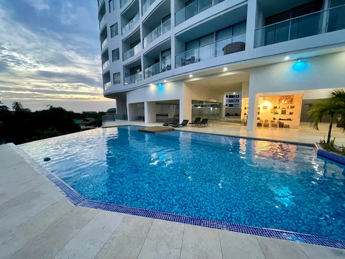 Απολαύστε μια απαράμιλλη θέα στην Καραϊβική Θάλασσα και τον αποκλειστικό κόλπο Pozos Colorados από ένα μοντέρνο, ευρύχωρο, φωτεινό και άνετο διαμέρισμα. Χαλαρώστε σε ένα ευχάριστο περιβάλλον με πρόσβαση σε δύο πισίνες, τζακούζι, σπα, σάουνα, ατμόλουτρο, μπαρ, εστιατόριο, αρτοποιείο και ιδιωτική παραλία. Κάντε μια βόλτα σε μια όμορφη προβλήτα που περιβάλλεται από φύση, όπου μπορείτε να δείτε ιγκουάνα και τροπικά πουλιά. Απαιτούνται βραχιολάκια για την πρόσβαση στους κοινόχρηστους χώρους: 30.000 COP ανά ενήλικα και 10.000 COP ανά παιδί (έως 7 ετών).