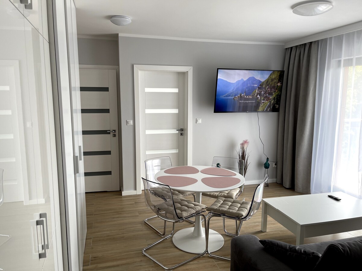 Μακριά από τη μεγάλη πόλη, το διαμέρισμά μας (βασική ανακαίνιση το 2023) βρίσκεται σε ένα γραφικό οικόπεδο στην άκρη του δασικού καταφυγίου "Wiejkowski las". Εδώ μπορείτε να ζήσετε απόλυτη γαλήνη και καθαρή φύση! Μια βόλτα στο δάσος, πέρα από πολλούς βάλτους και λίμνες, χαλάρωση διαβάζοντας ένα βιβλίο δίπλα στο τζάκι ή ένα ταξίδι στη γειτονική Βαλτική Θάλασσα; Όλα αυτά και πολλά άλλα είναι όσα μπορείτε να περιμένετε εδώ!