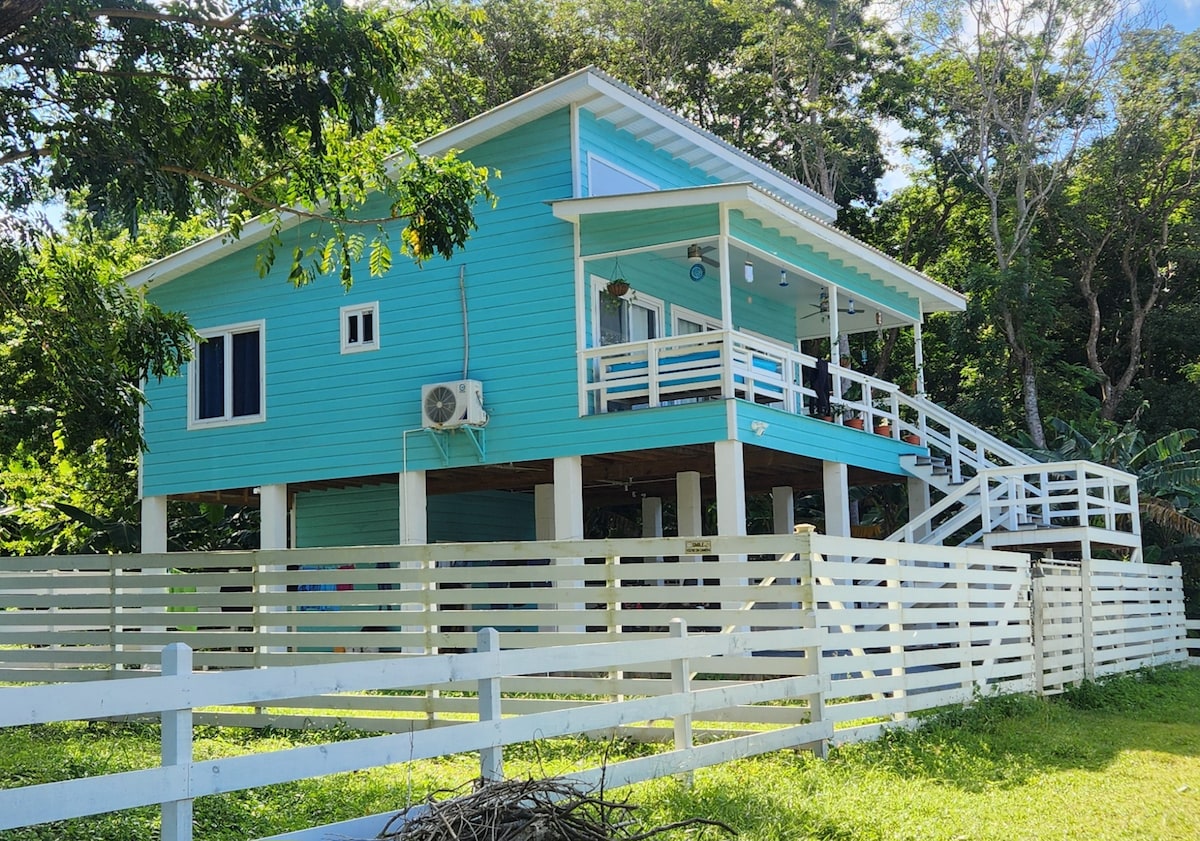 Newly renovated upscale home located at the end of main street at the upper lagoon bridge. Fully insulated, fully airconditioned and energy efficient. Built to USA building code. Short walk to popular dive centers, restaurants, bars and Bando Beach. Off grid solar powered. Two spacious porches. Private water supply. Fenced and gated for privacy. Lined with mangroves on the lagoon side. Spacious yard with colorful landscaping. Spectacular sunrises can be seen from the house.