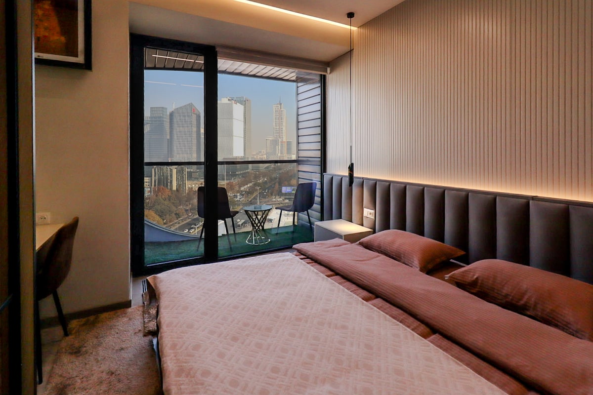 Απολαύστε μια κομψή διαμονή στο κέντρο της Τασκένδης, σε ένα διαμέρισμα με θέα την πόλη της Τασκένδης. Κοντά στο πάρκο της πόλης Τασκένδης, Magic City, μια τεράστια ποικιλία εστιατορίων. Το υπνοδωμάτιο διαθέτει κλιματισμό. Υπέρδιπλο κρεβάτι, εσωτερικός σχεδιασμός, πλήρως εξοπλισμένη κουζίνα, καφετιέρα, κλιματισμός και μπαλκόνι με θέα στην πόλη της Τασκένδης. Στο σπίτι: ρεσεψιόν, χώρος συνεργασίας, γυμναστήριο, παρατηρητήριο. Ιδανικό για επαγγελματικά ταξίδια και ρομαντικά Σαββατοκύριακα. Wi-Fi υψηλής ταχύτητας στο διαμέρισμα και στον χώρο συνεργασίας.