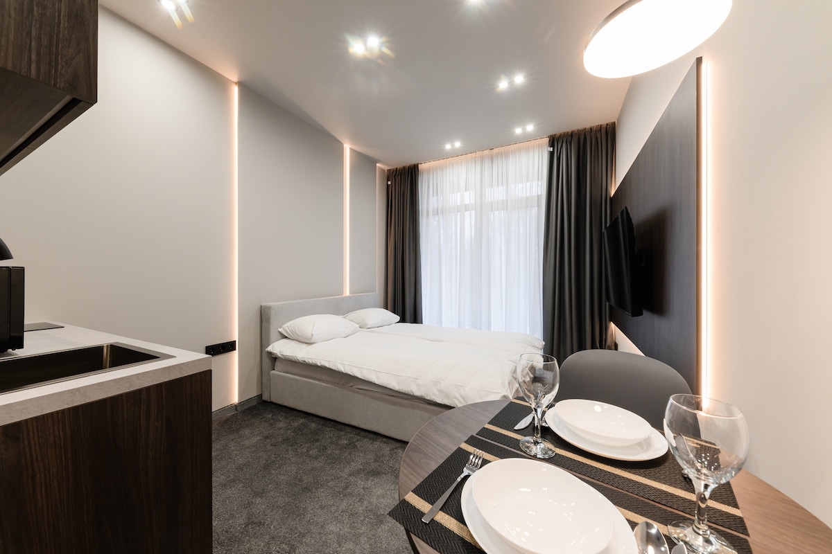 Κομψό διαμέρισμα 1 υπνοδωματίου σε ένα νέο κτίριο, όλα είναι καινούρια. Ακριβώς δίπλα στο σπίτι ΥΠΑΡΧΕΙ σούπερ μάρκετ atb, αεροδρόμιο, σύνορα, εστιατόριο " Country Club", δημοτικό νοσοκομείο και μαιευτήριο. Το διαμέρισμα διαθέτει όλα όσα χρειάζεστε για την άνετη διαμονή σας, πιάτα και κλινοσκεπάσματα, πετσέτες, τηλεόραση, φούρνο, πλυντήριο ρούχων, πιστολάκι μαλλιών σε αυτόν τον ήρεμο και κομψό χώρο.